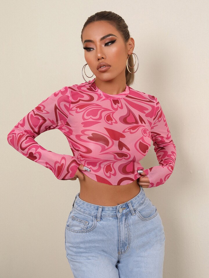 Haut Collant Avec Cœur Transparent Et Col Montant À Motifs De Cœur