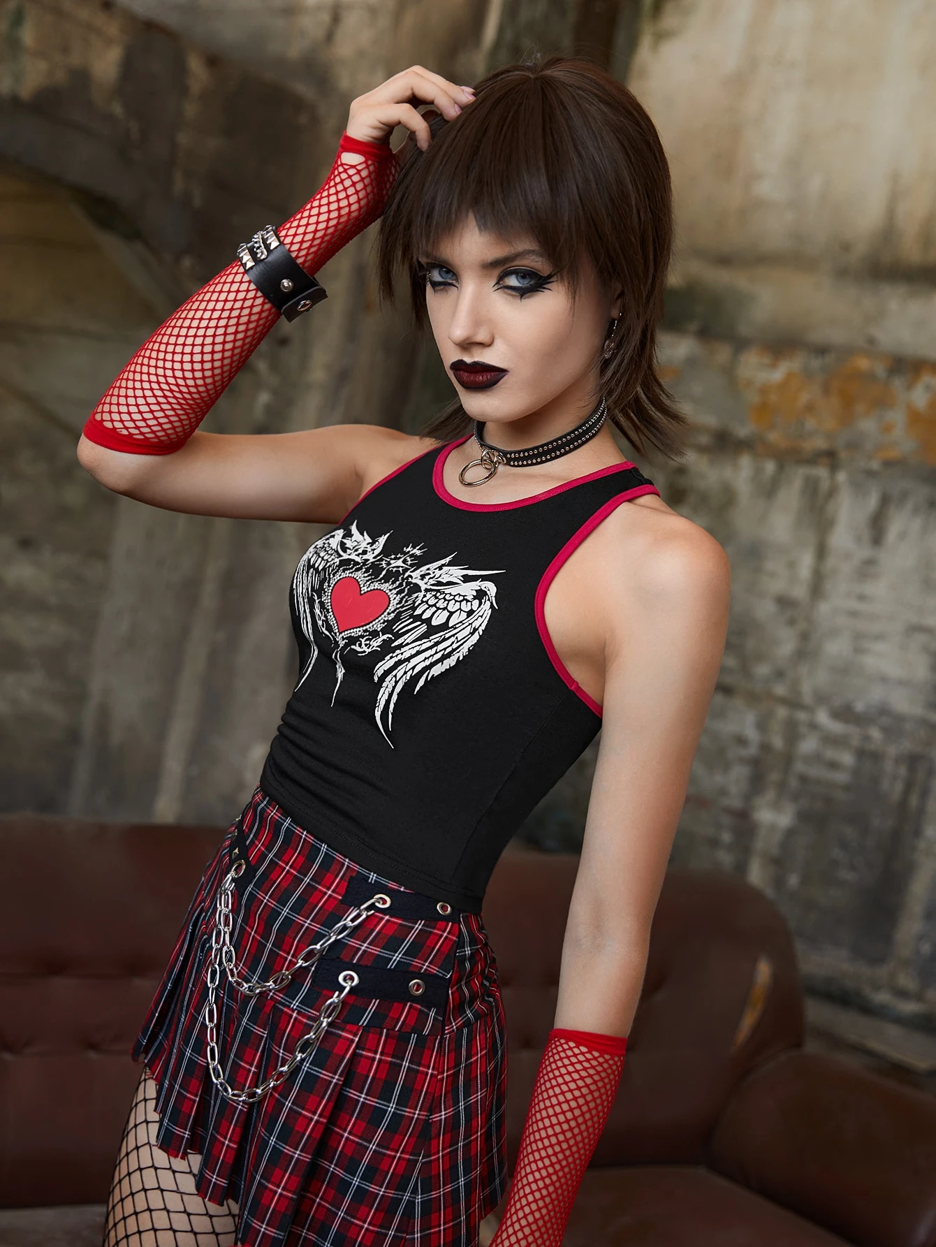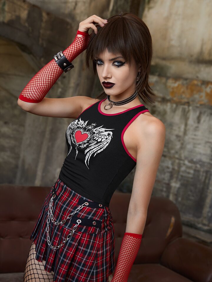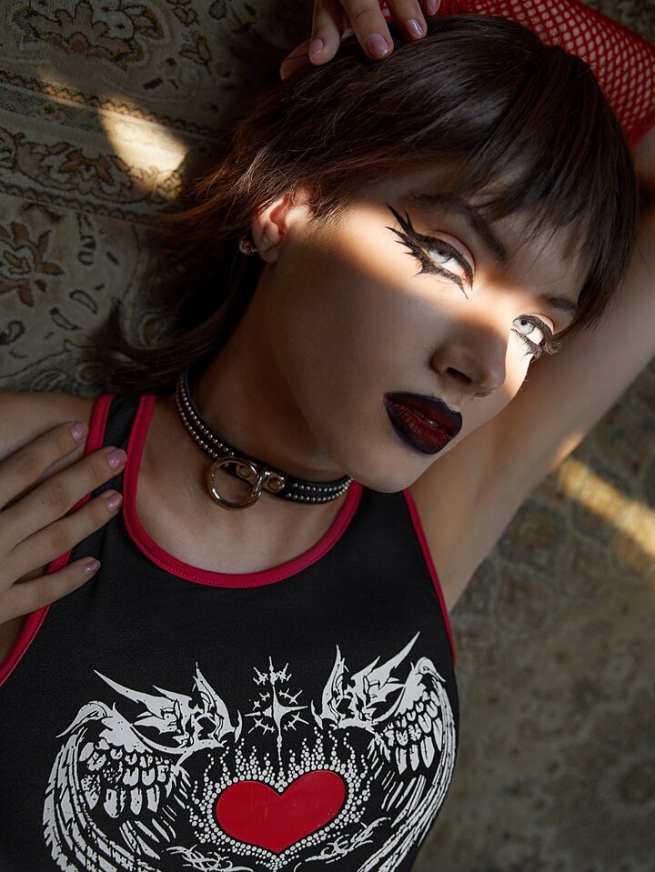 Débardeur à liséré contrastant cœur & aile graphique