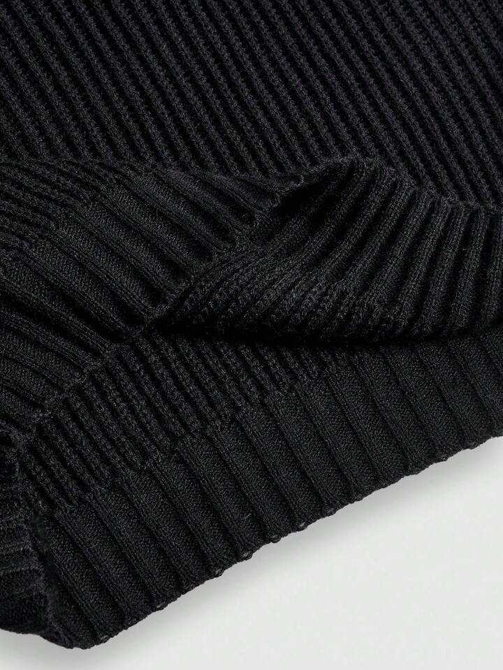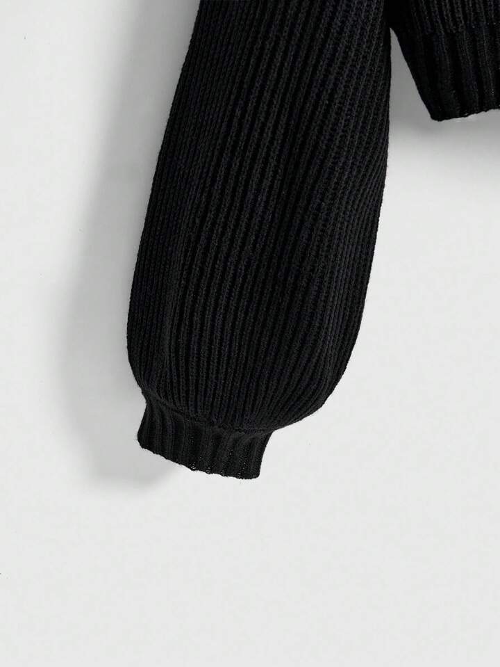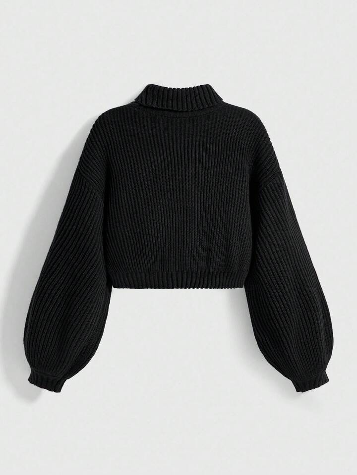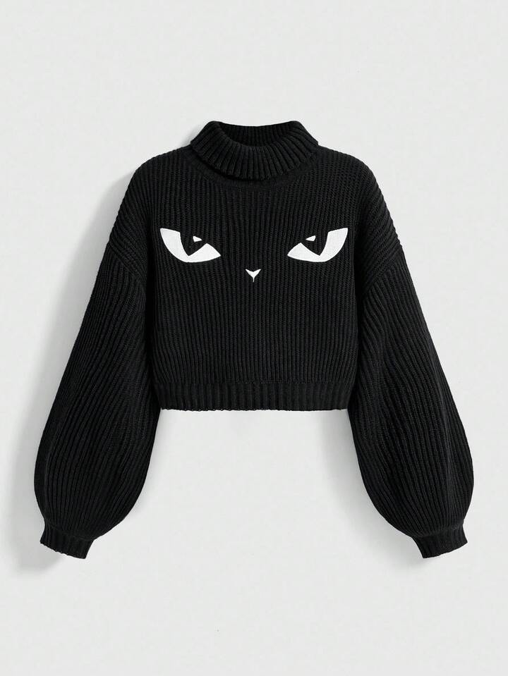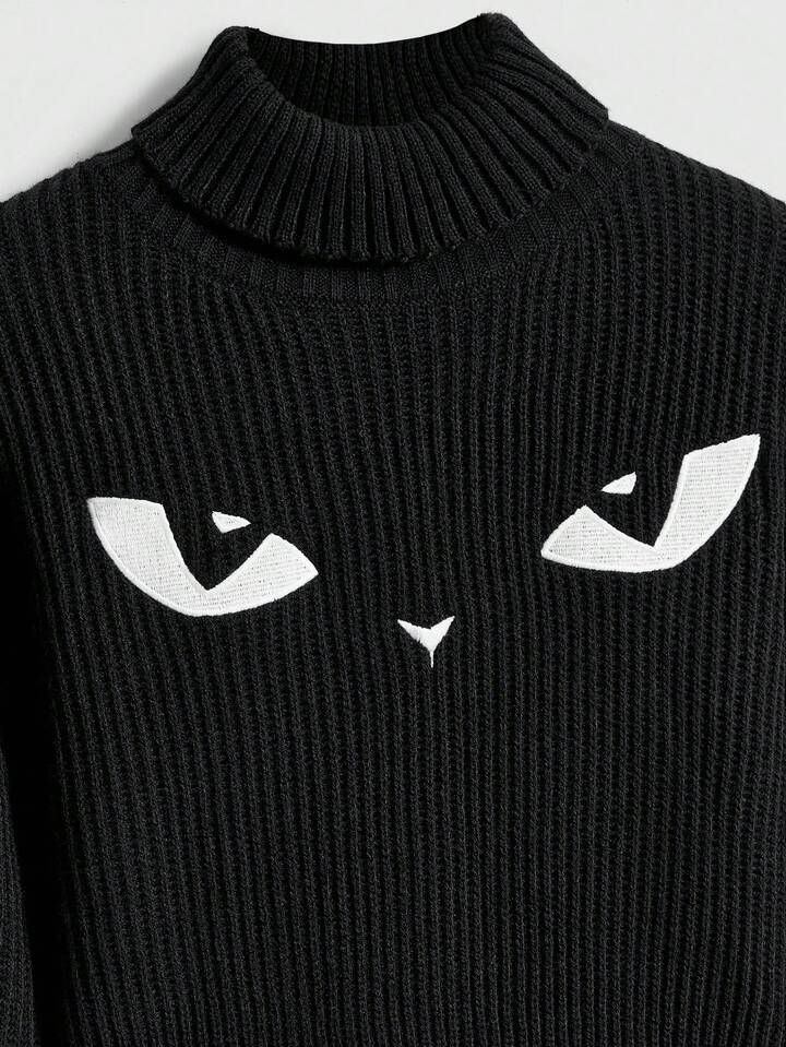 Pull sombre à col montant avec broderie mystérieuse de chat gothique noir