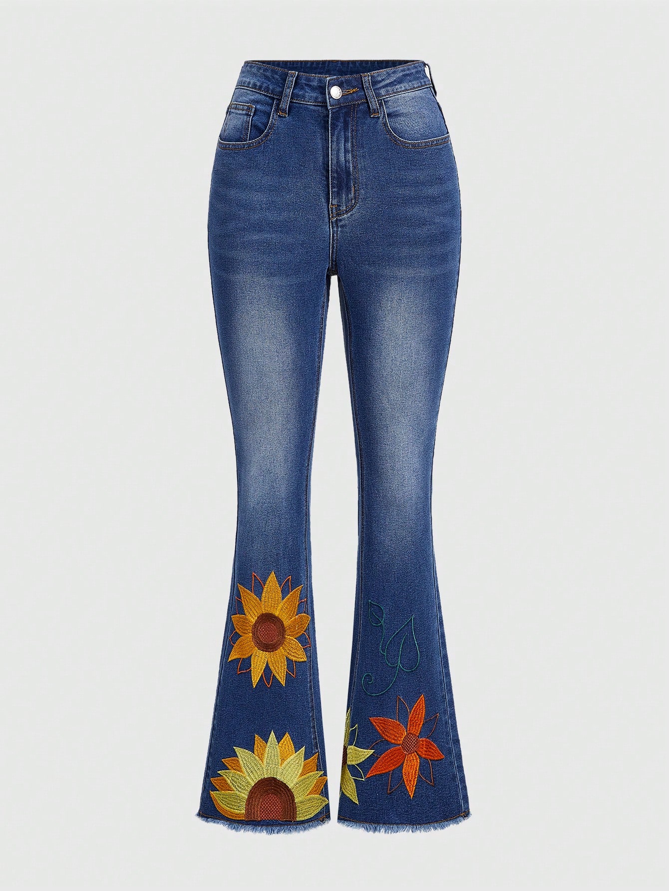 Hippie Jean Évasé En Tournesol Brodé D'art