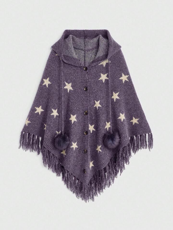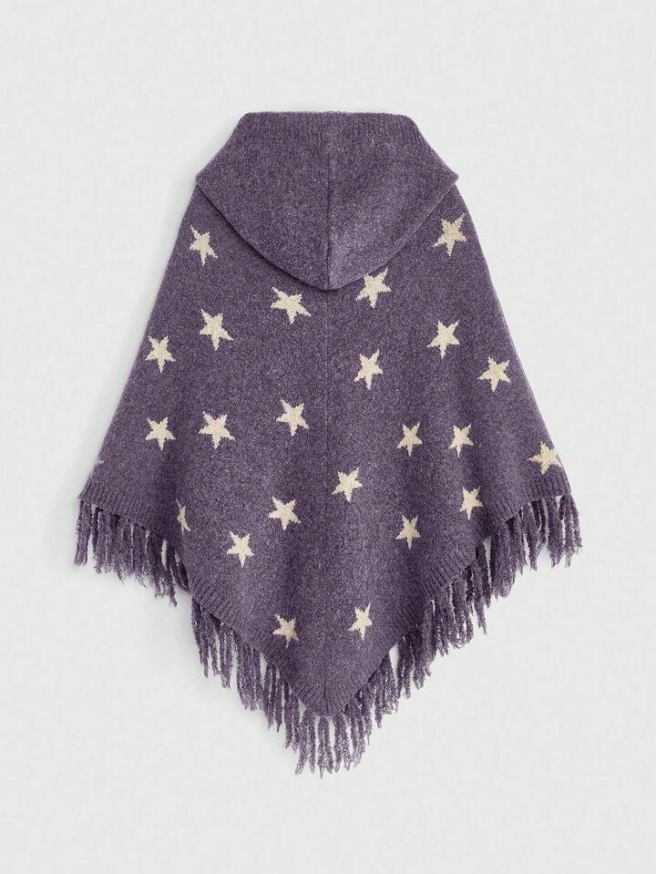 Cardigan à capuche pour femmes style hippie boho mystérieux sorcière, avec manches chauve-souris style jacquard et franges à l'ourlet
