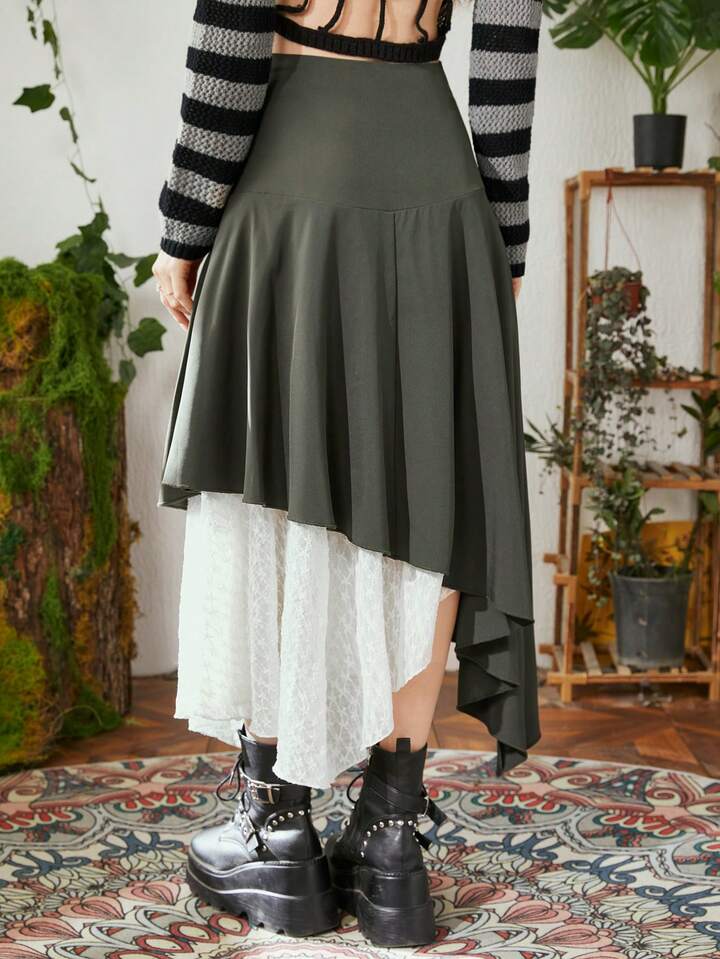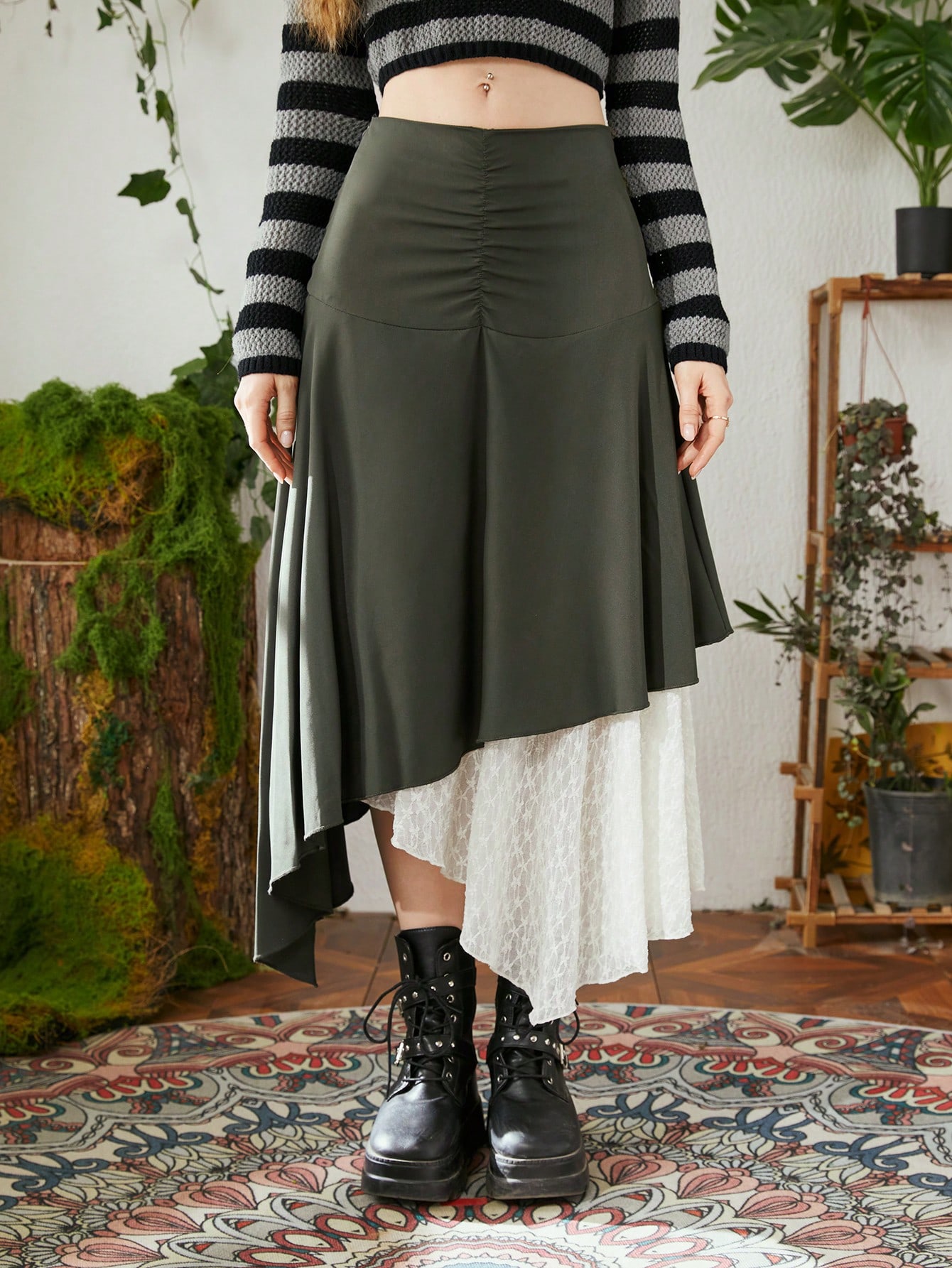 Hippie Jupe À Blocs De Couleurs À Ruché Asymétrique