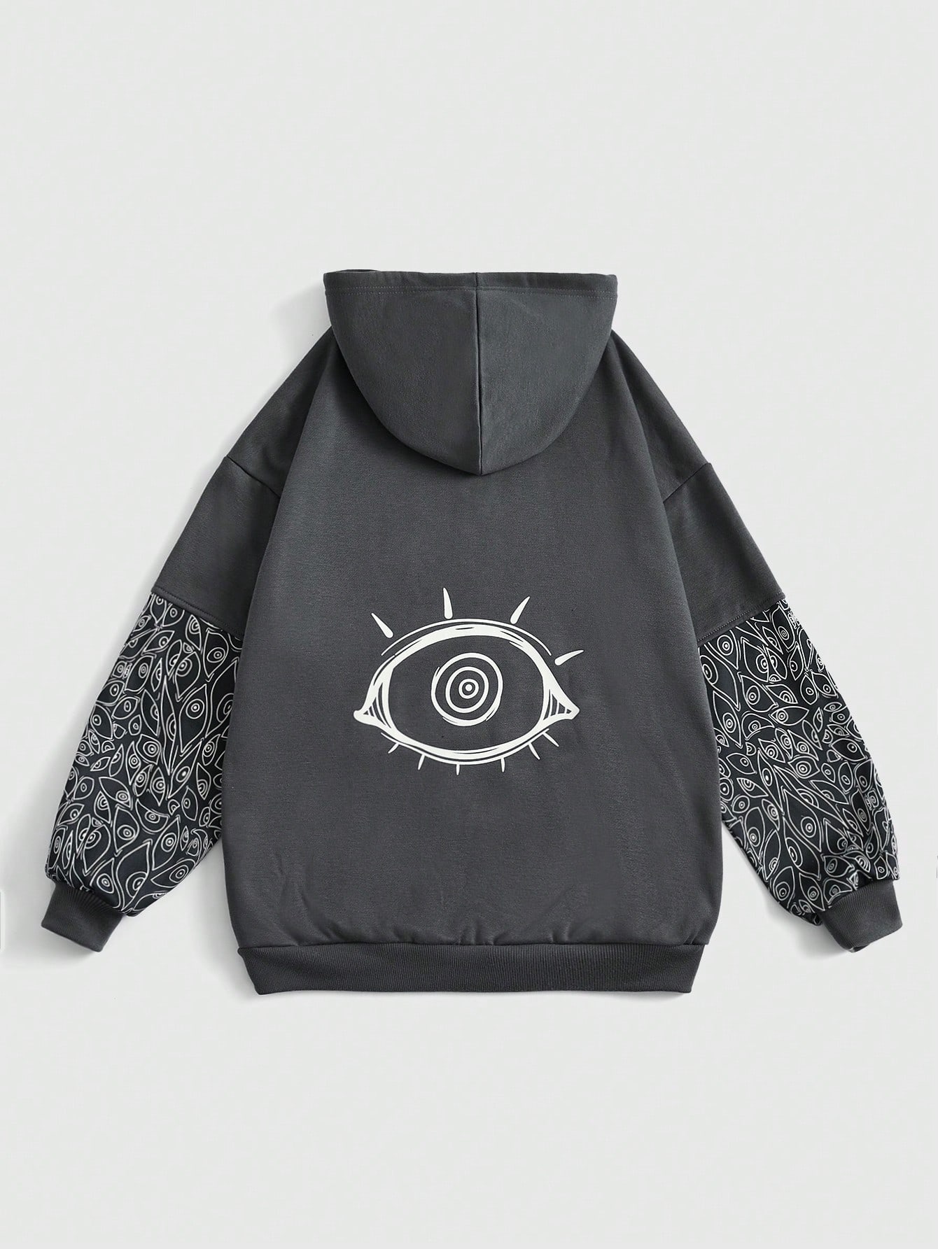 Hippie Sweat-Shirt À Capuche Œil Graphique Épaule tombante À Cordon
