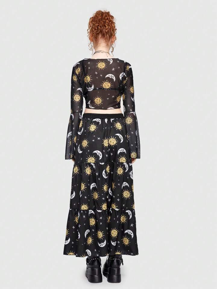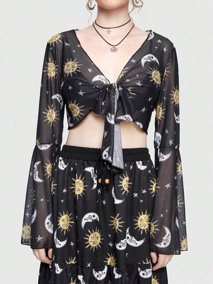 Hippie Jupe & Top Imprimé Galaxie Manches Évasées À Nœud