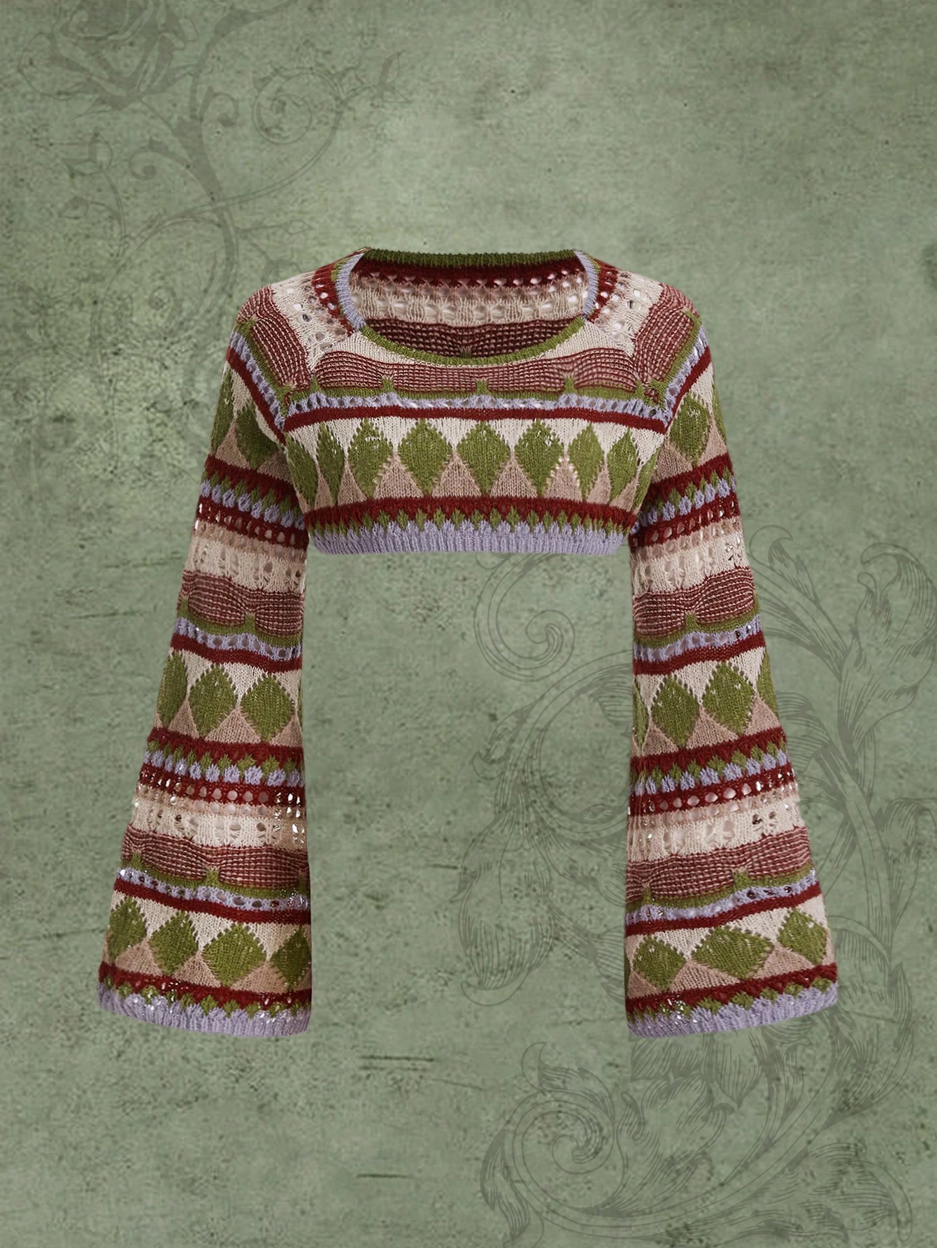 Hippie Pull Court Motif Géométrique Manches Cloche