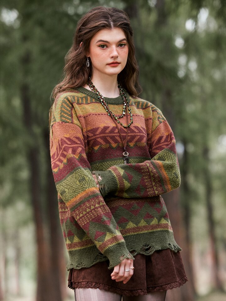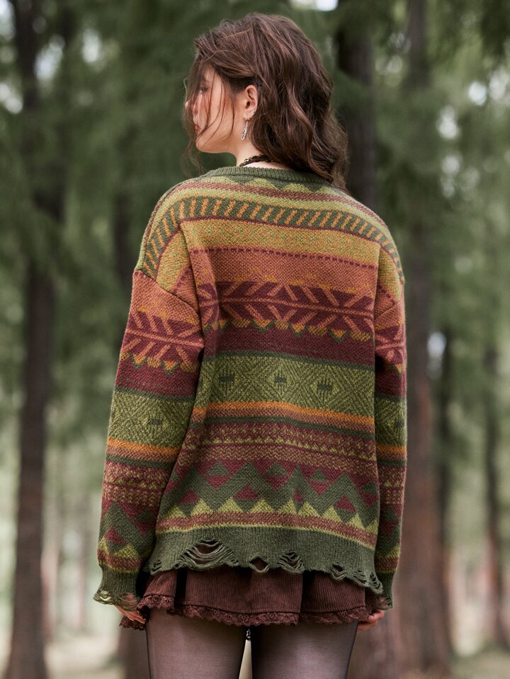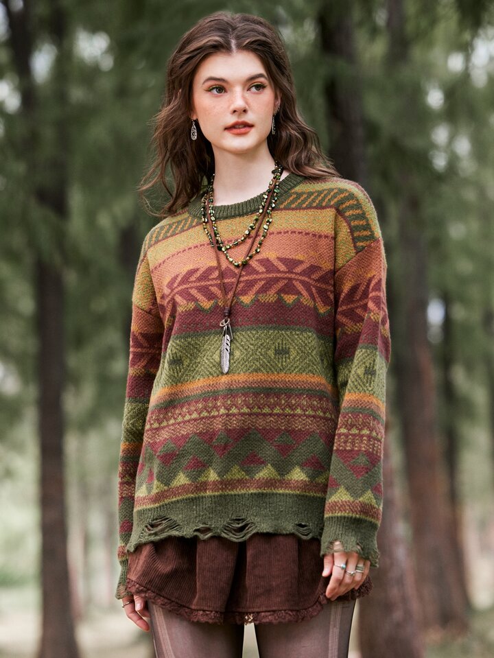 Hippie Pulls pour femmes Déchiré Casual Géométrique