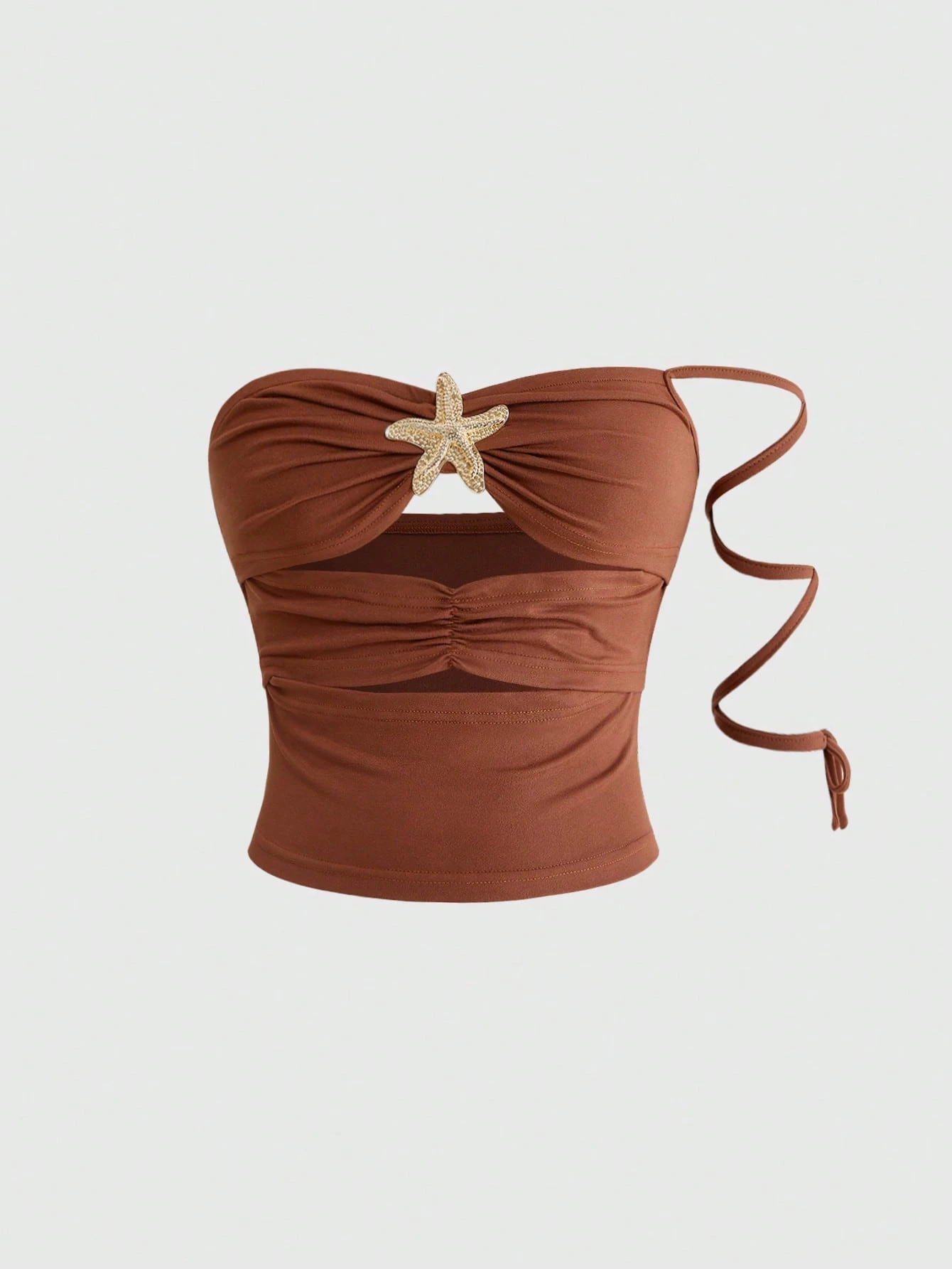 Top court sexy à une épaule sans manches pour le festival de musique hippie de l'île