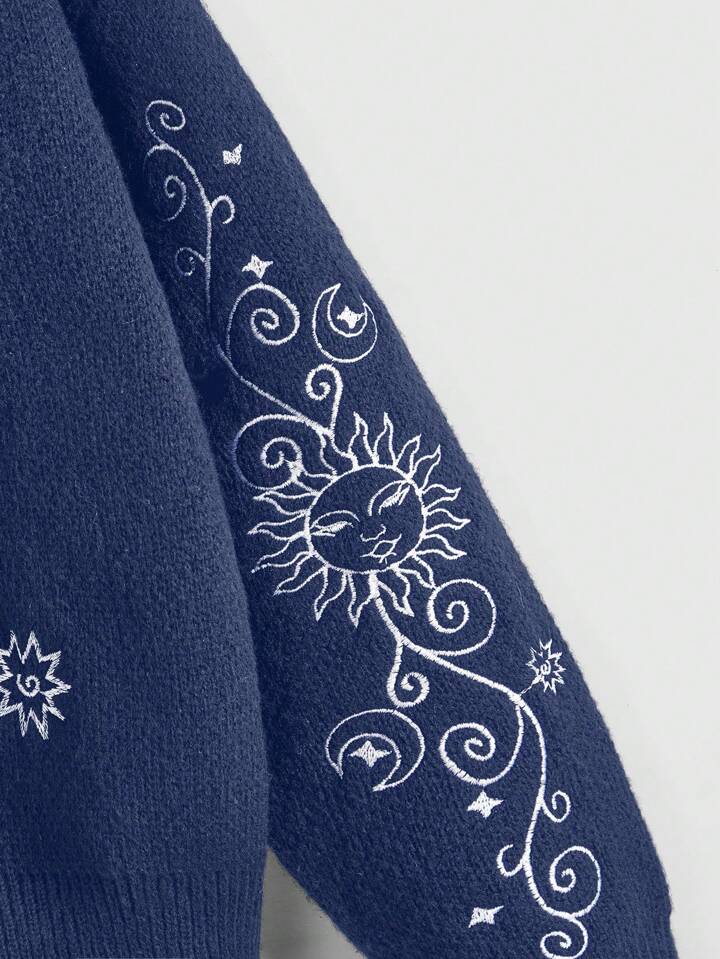 Hippie Cardigan fantaisiste gothique pour dames avec broderie de lune et d'étoiles pour Halloween