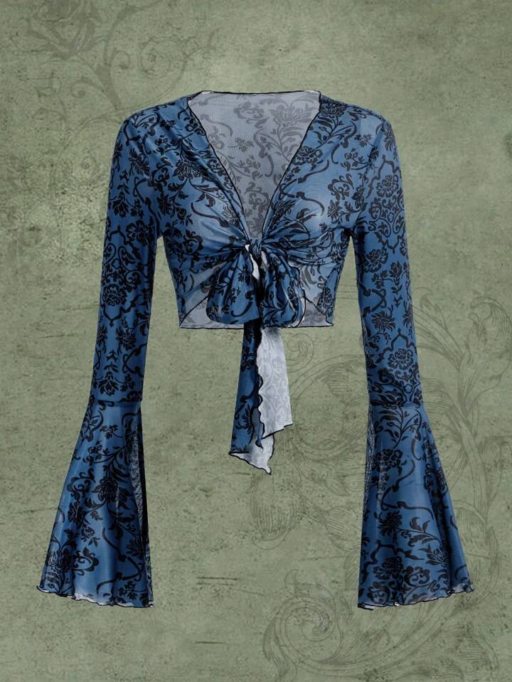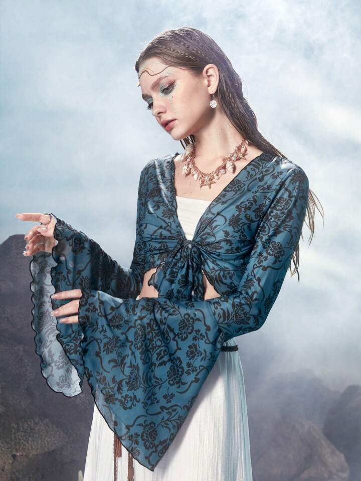 Hippie Sirène Top Court Imprimé Manches Évasées À Nœud