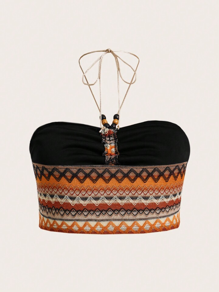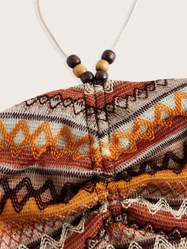 Hippie Plus Top Ras-Du-Cou Imprimé Géométrique À Ruché