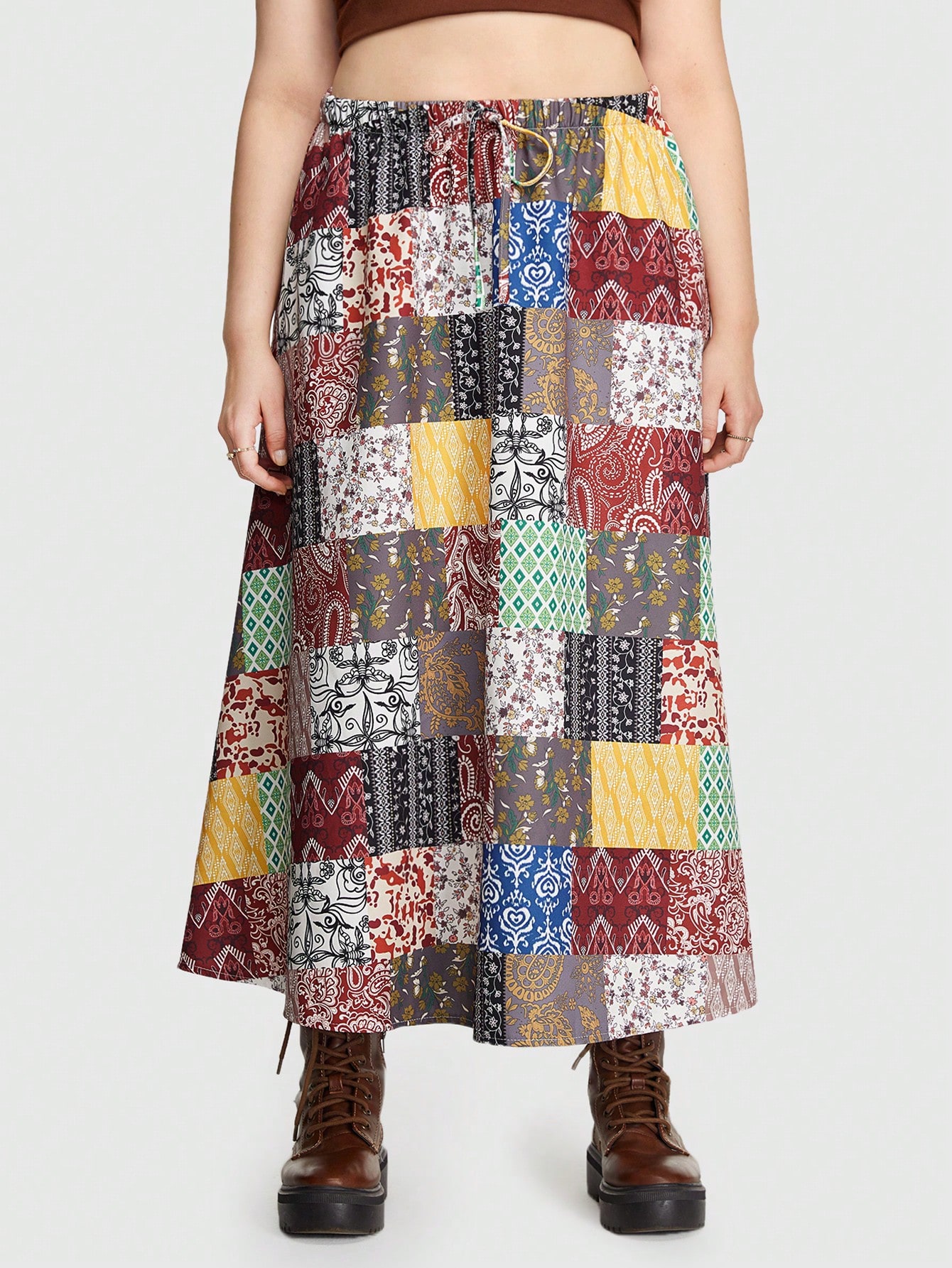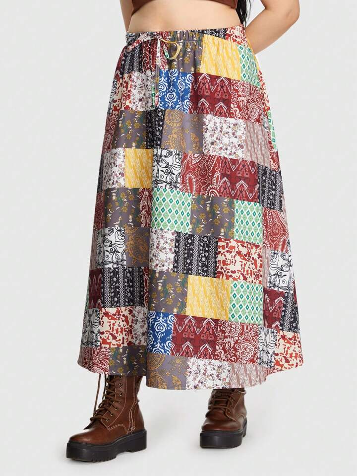 Hippie Plus Jupe Imprimé Patchwork Taille Élastique