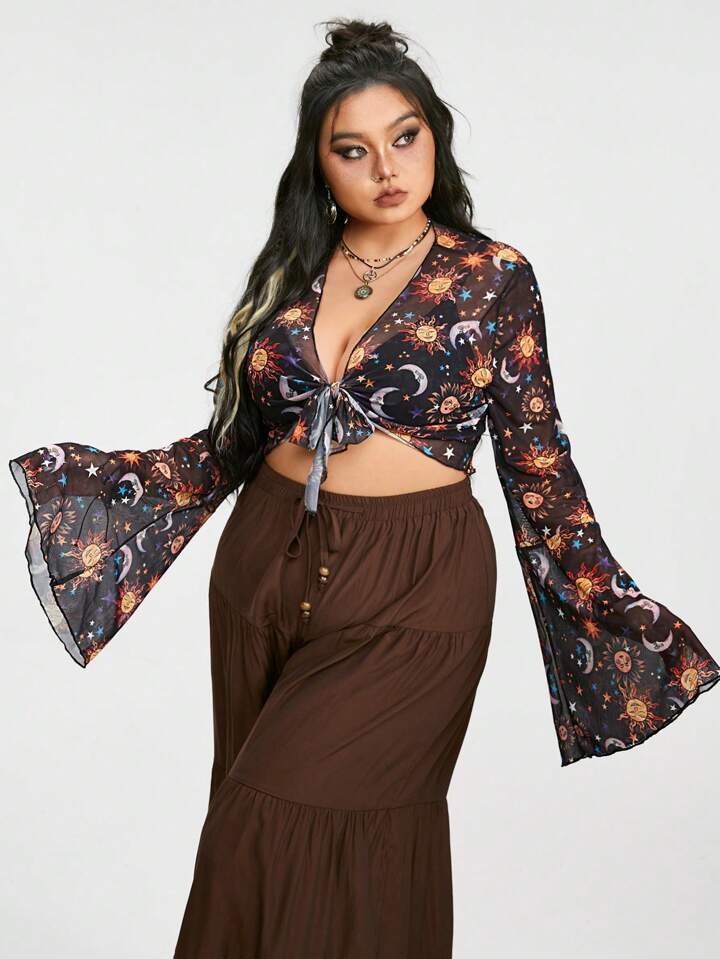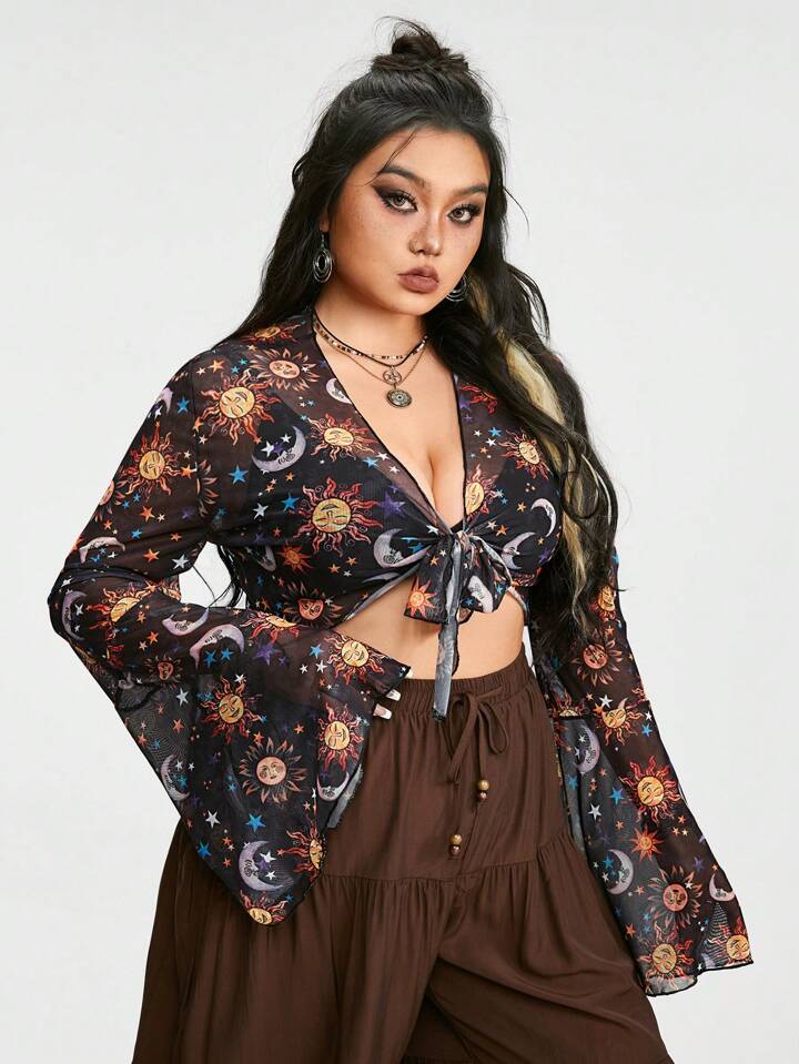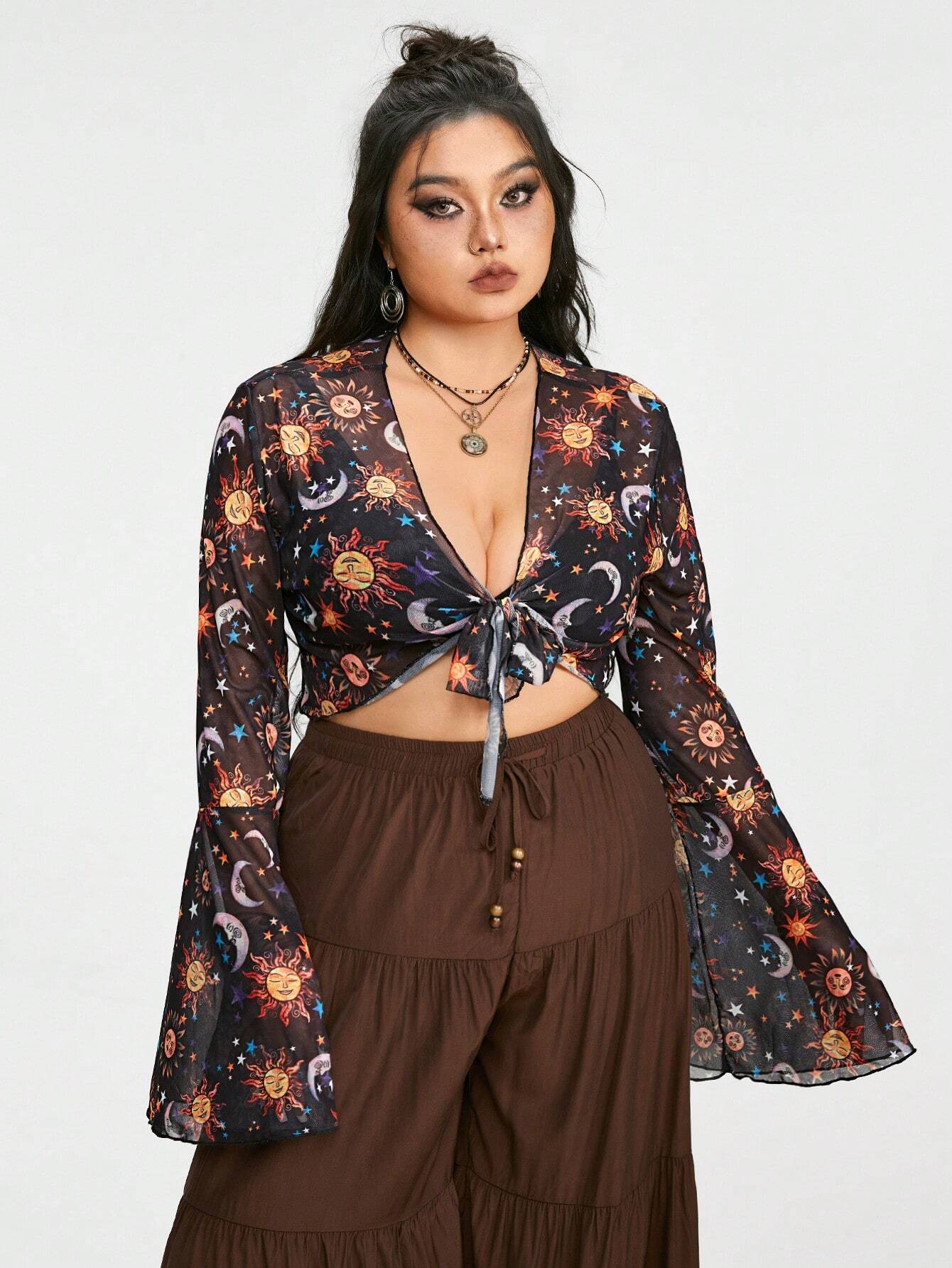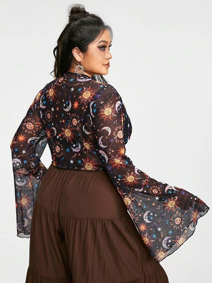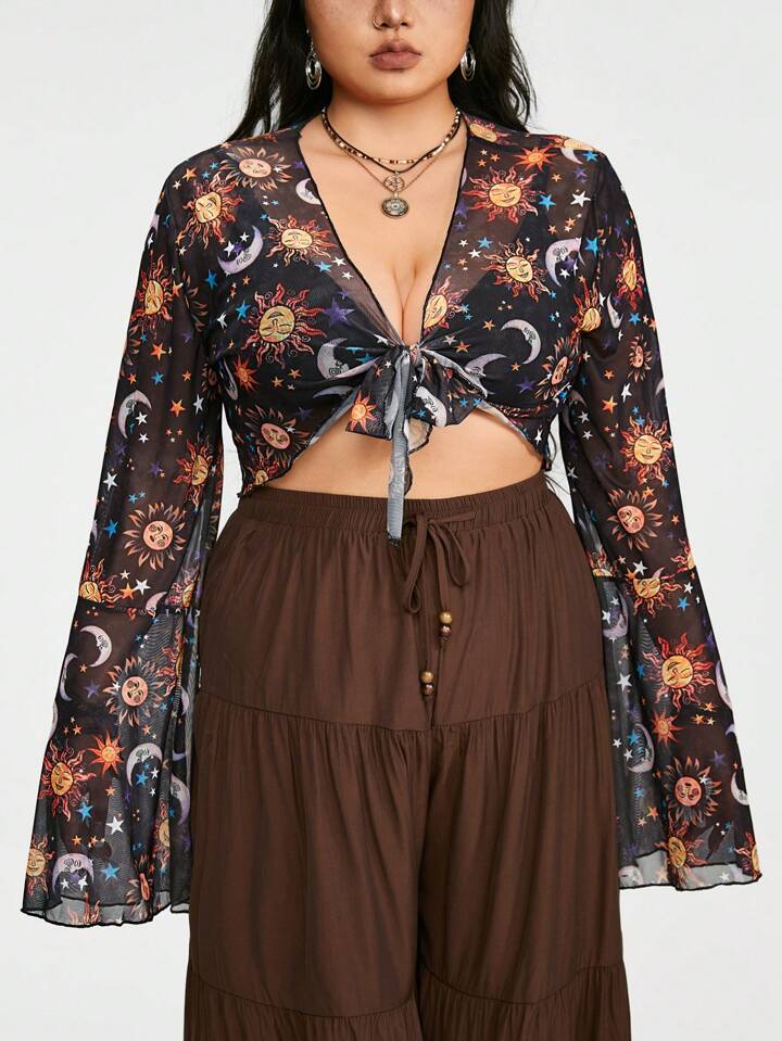 Haut Pour Femme En Taille Plus Style Hippie Avec Impression De Soleil, De Lune Et D'étoiles En Astrologie