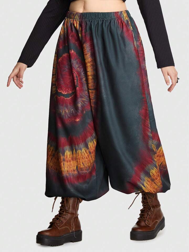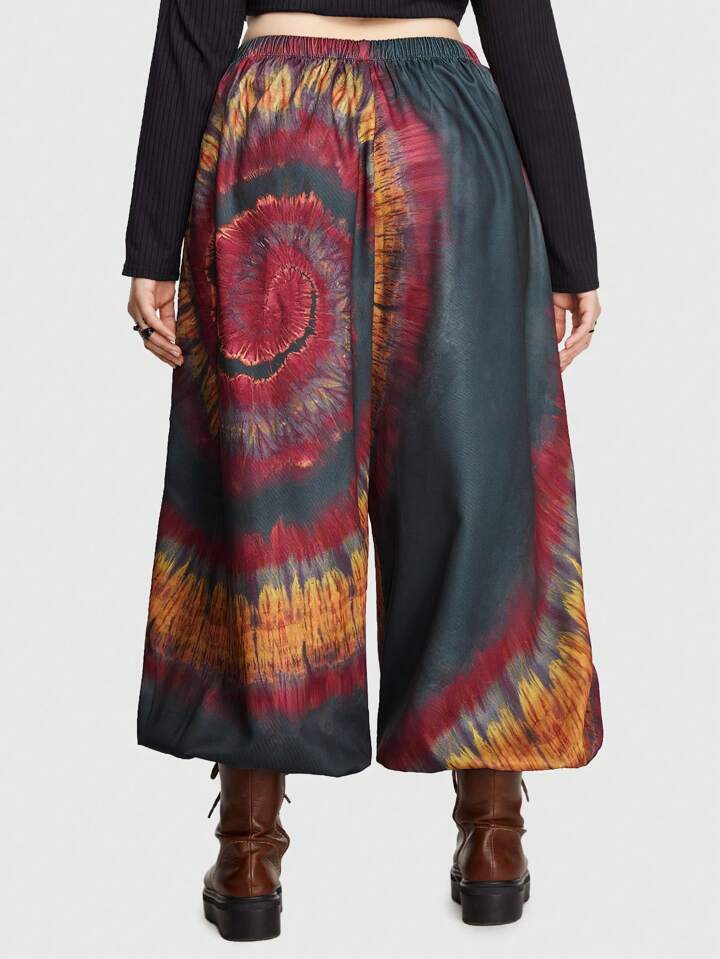 Hippie Plus Pantalon Tie Dye Taille Élastique Manches Bouffantes