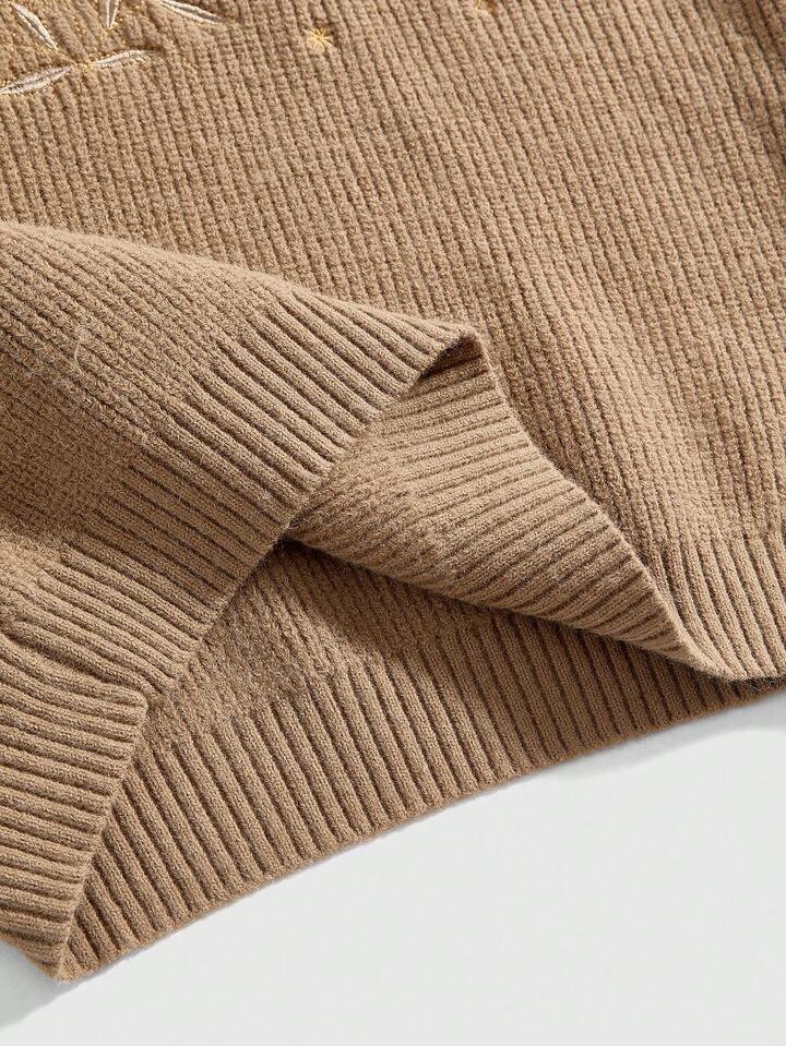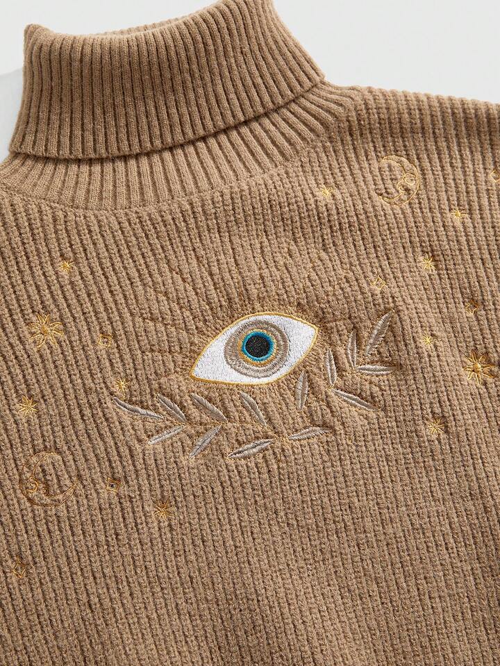 Hippie pull rétro bohème aux vibrations de vacances avec broderie de lune et d'étoile bleu-vert