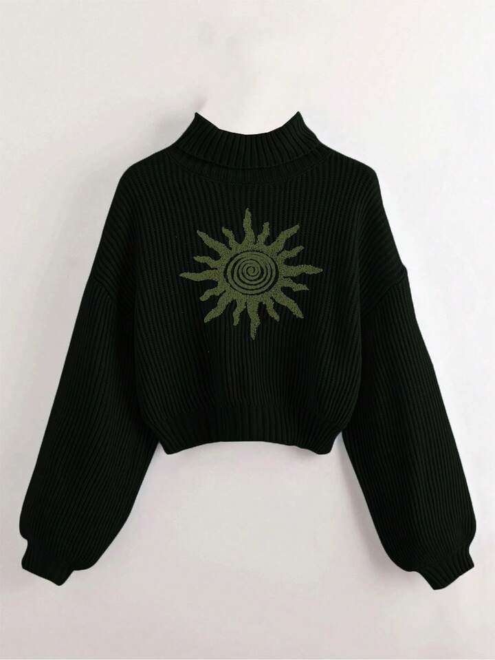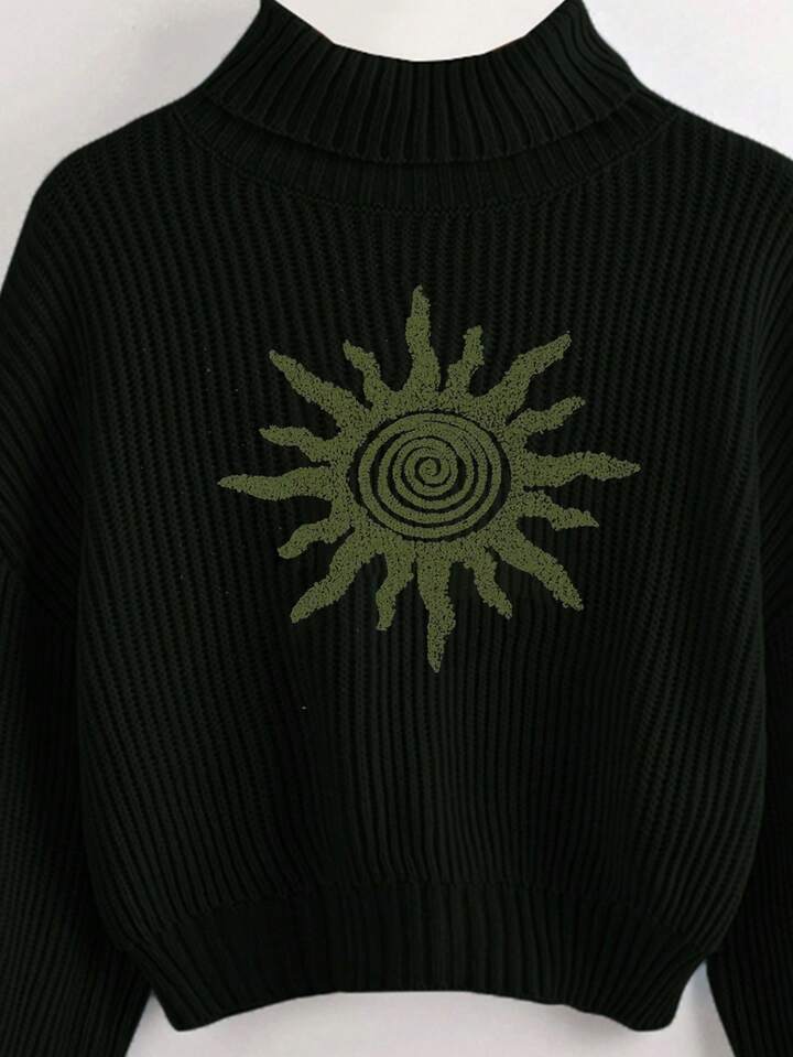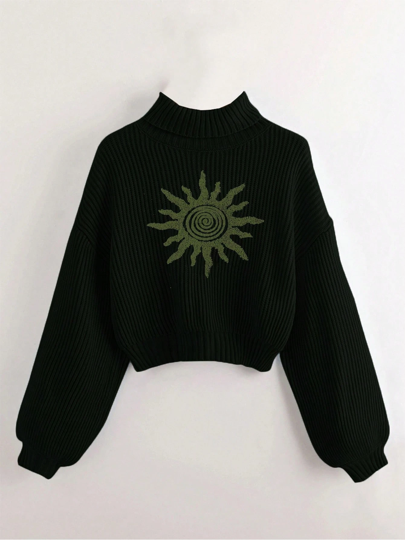 Hippie Pull à col montant, manches lanternes, motif, tops à manches longues