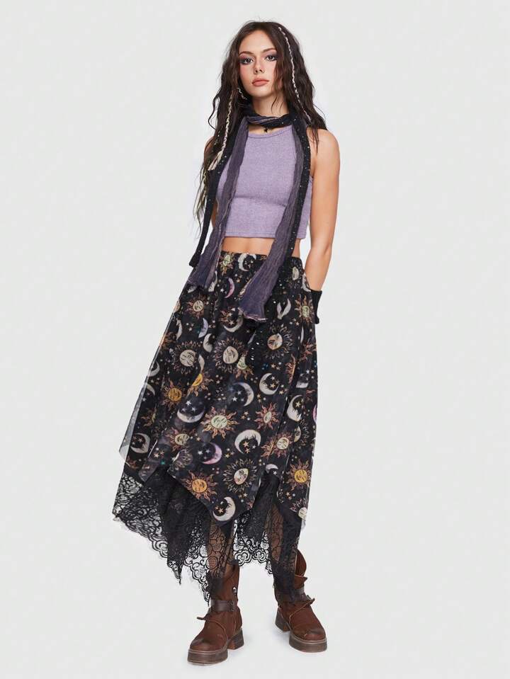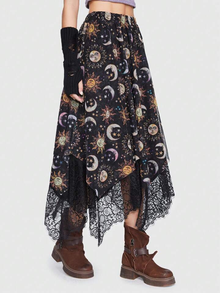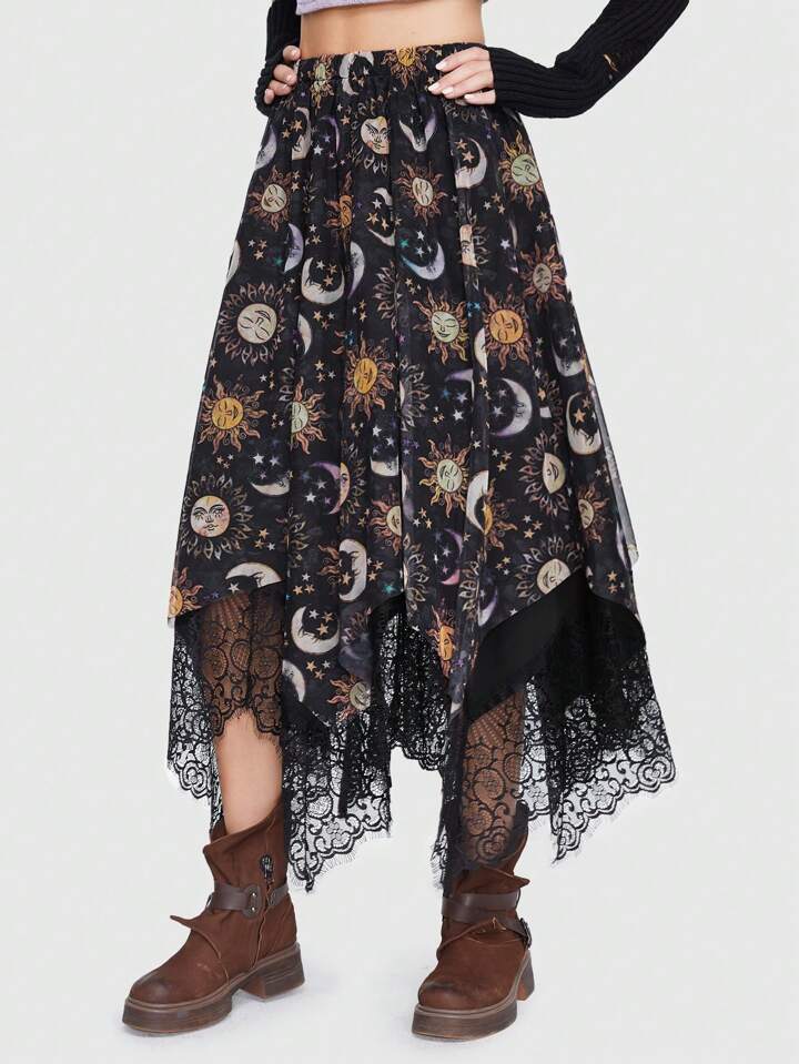 Hippie Jupe Soleil Et Lune En Dentelle Ourlet Hanky