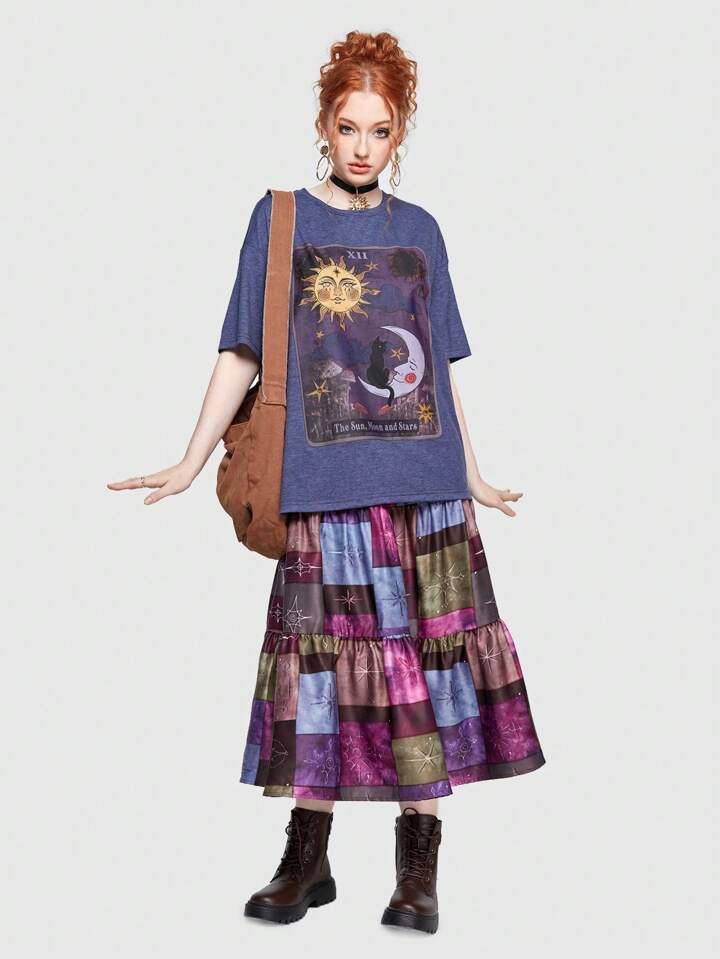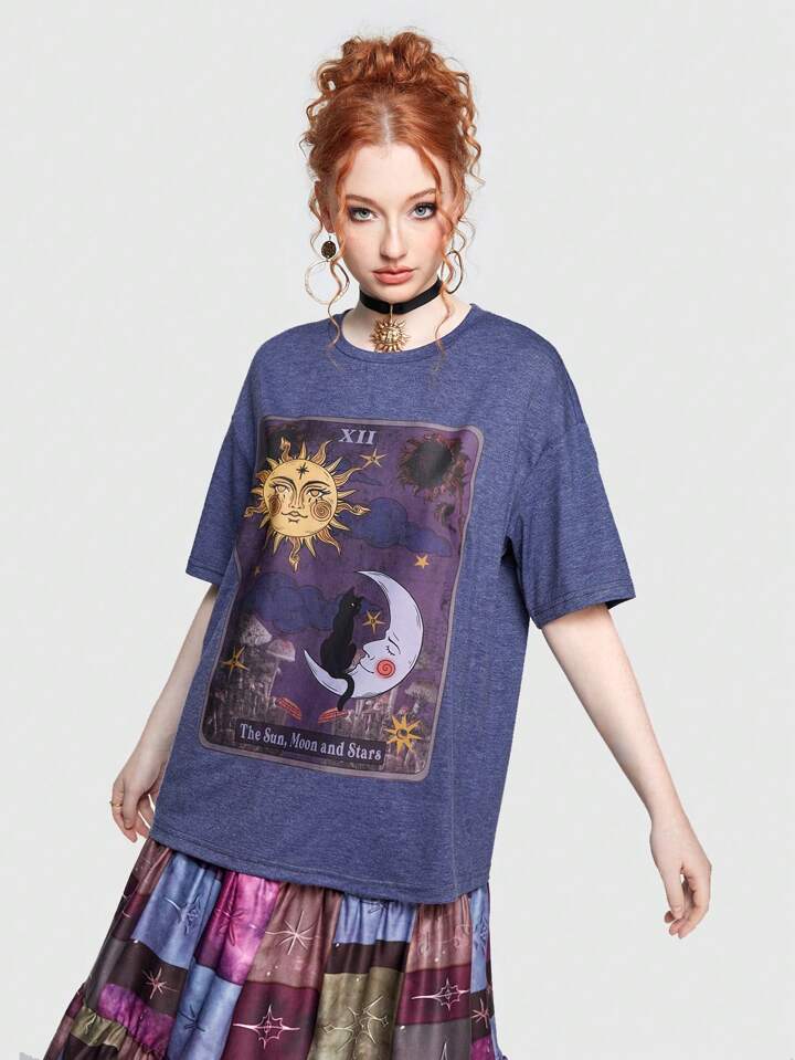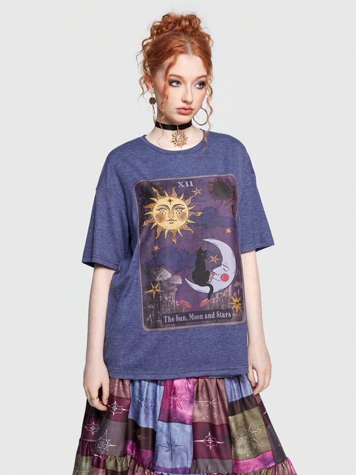 Hippie T-shirt Imprimé Soleil Et Lune