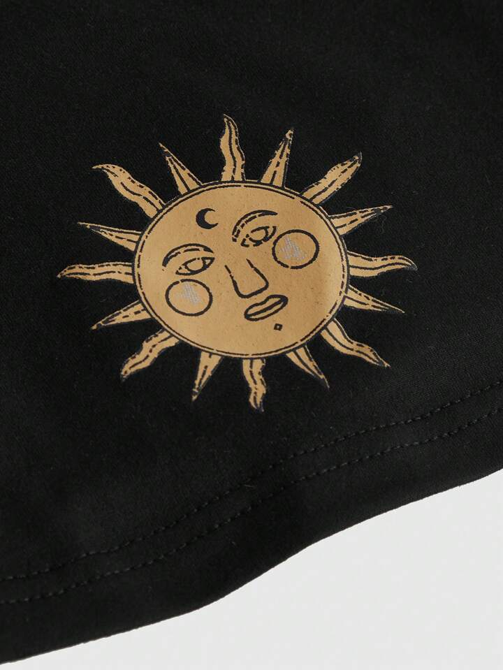 Hippie Imprimé Soleil Et Lune Top Ras-Du-Cou & À Volants Jupe