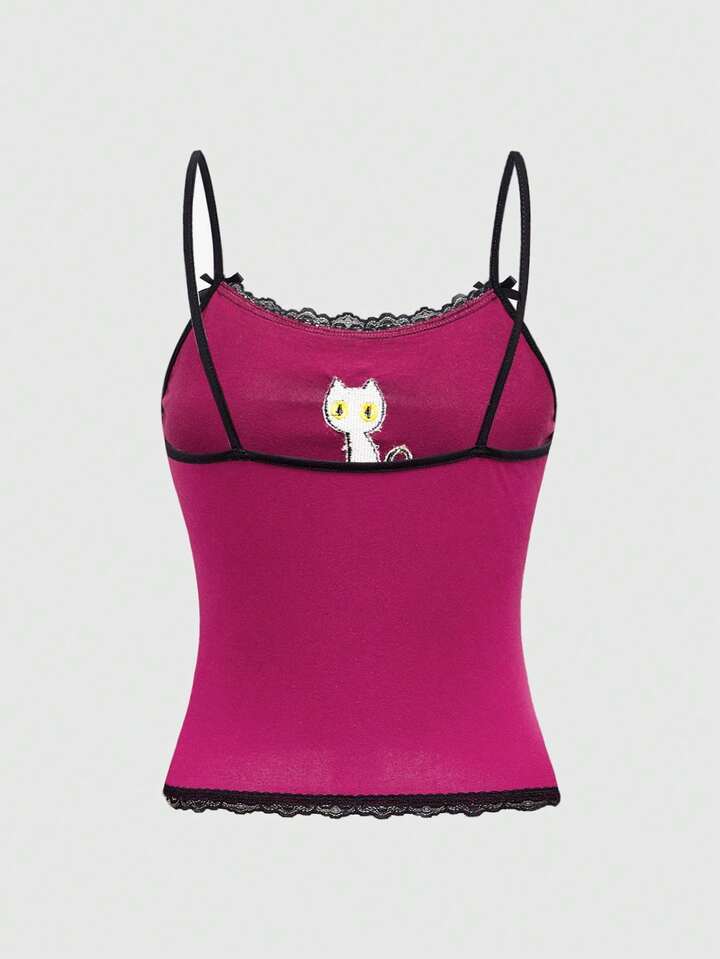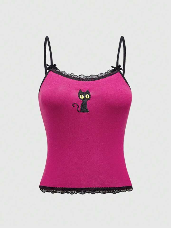 Hippie Débardeur rayé avec broderie de sorcière et chat noir