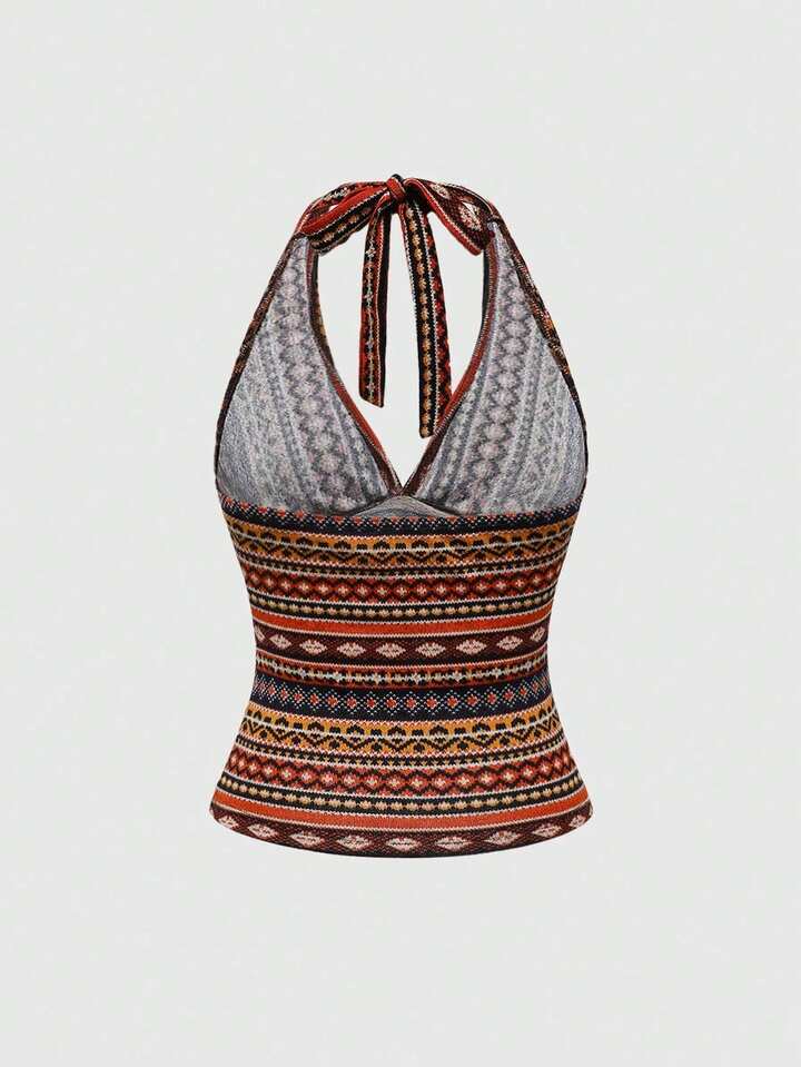 Hippie Débardeur moulant casual de vacances dos nu avec imprimé géométrique pour femme