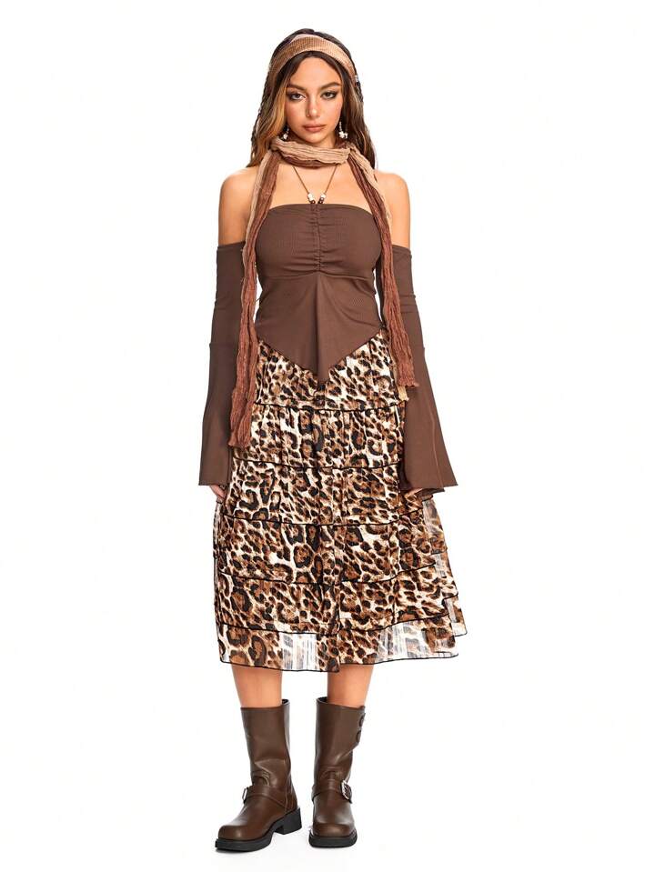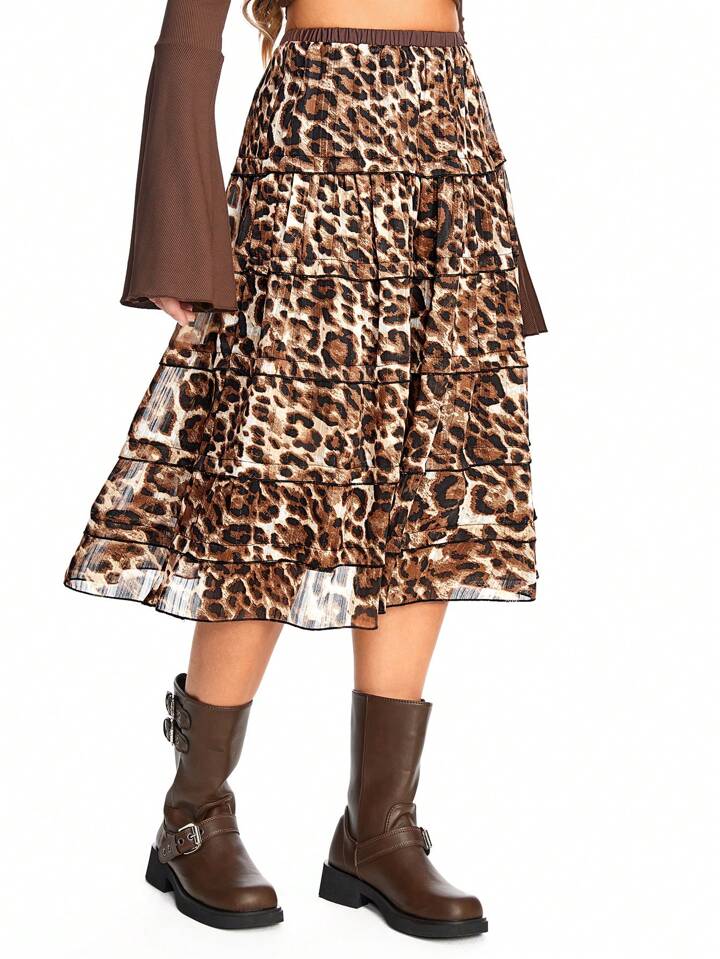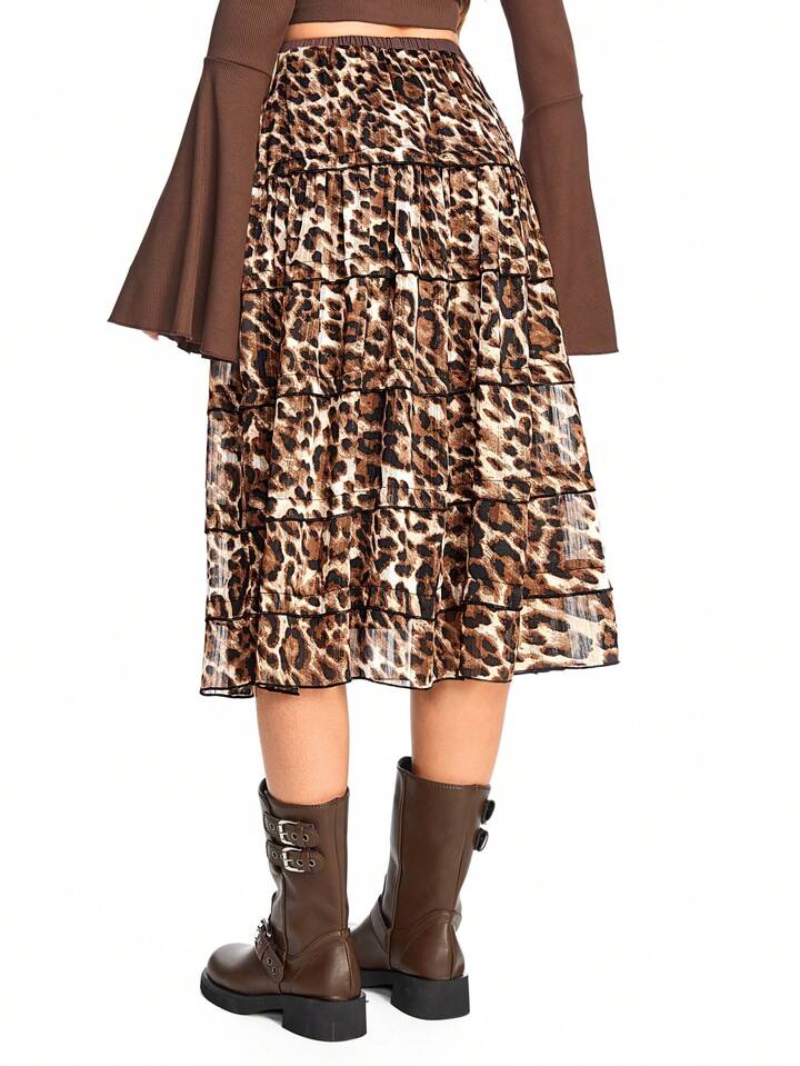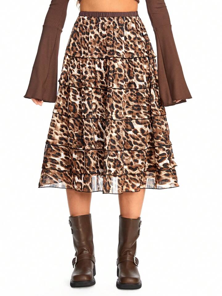 Hippie Jupe gâteau à imprimé léopard rétro du millénaire pour femmes, décontractée et pour vacances