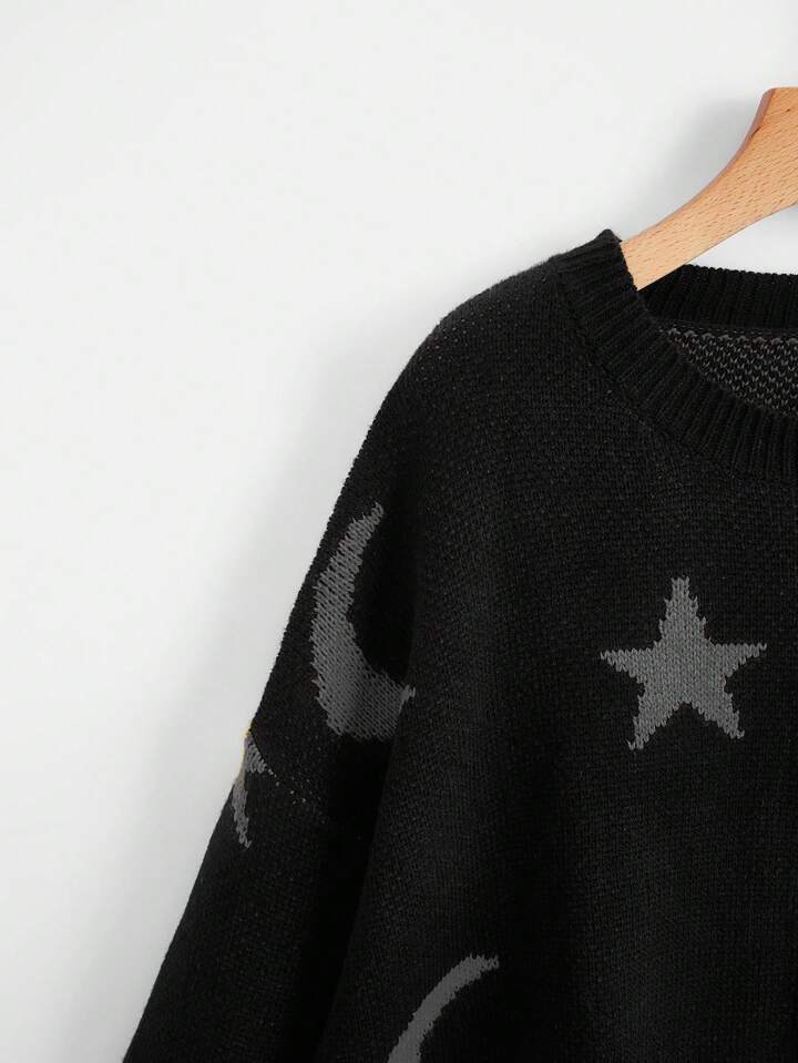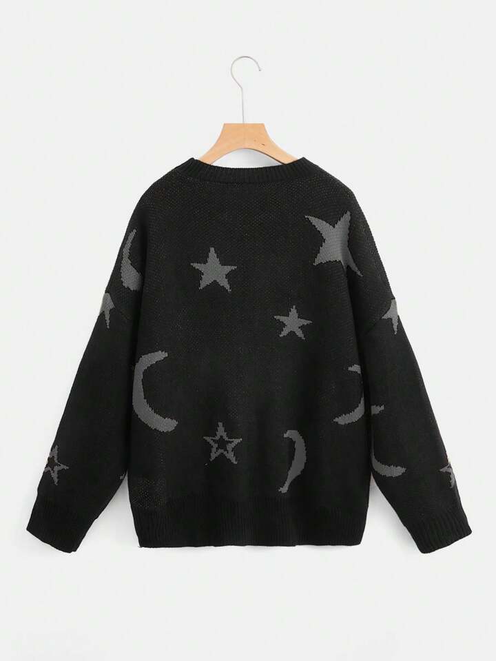 Hippie Pull Ample Pour Femme À Épaules Tombantes Avec Un Motif De Lune Et D'étoiles Pour Un Look Décontracté