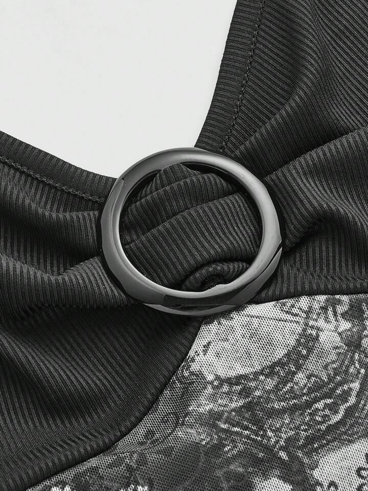 Hippie Top asymétrique à encolure dégagée avec design patchwork pour femme