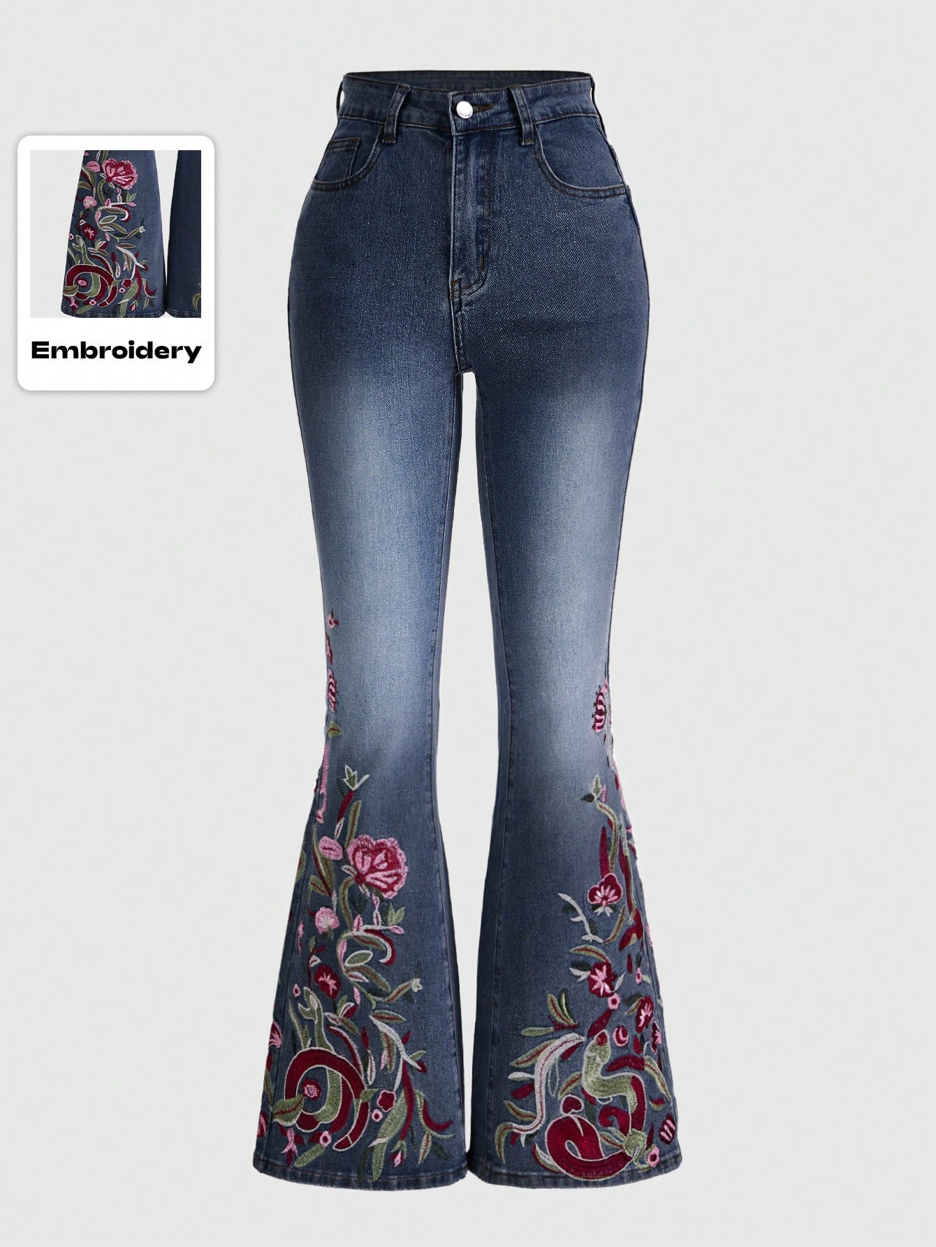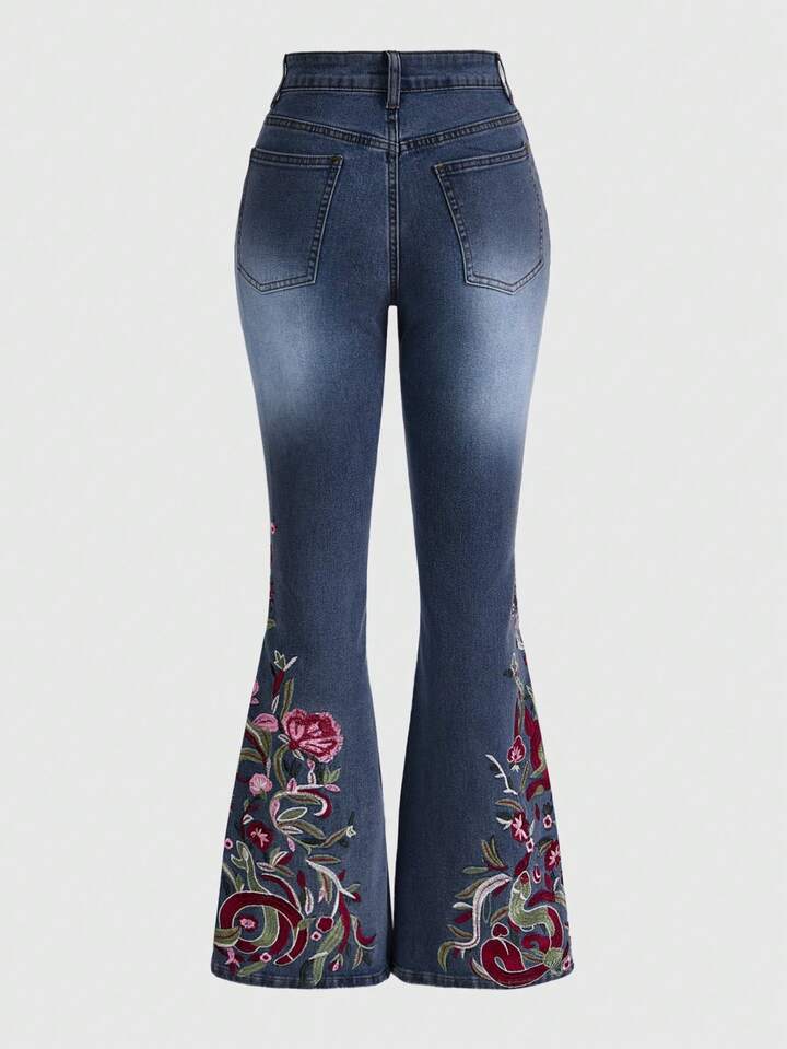 Hippie Jeans évasés à fleurs brodées pour femmes