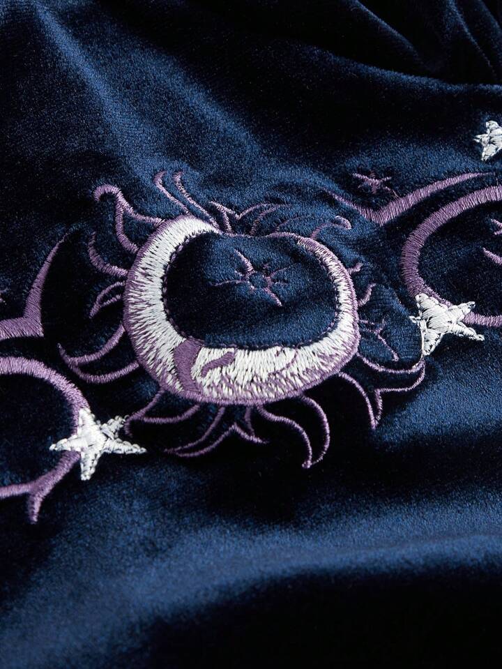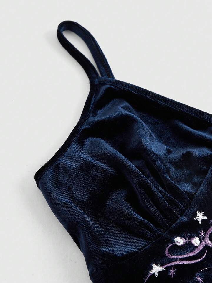 Hippie Robe À Bretelles Spaghetti À Ourlet De Sirène Brodé De Lune Et D'étoile Pour Femme