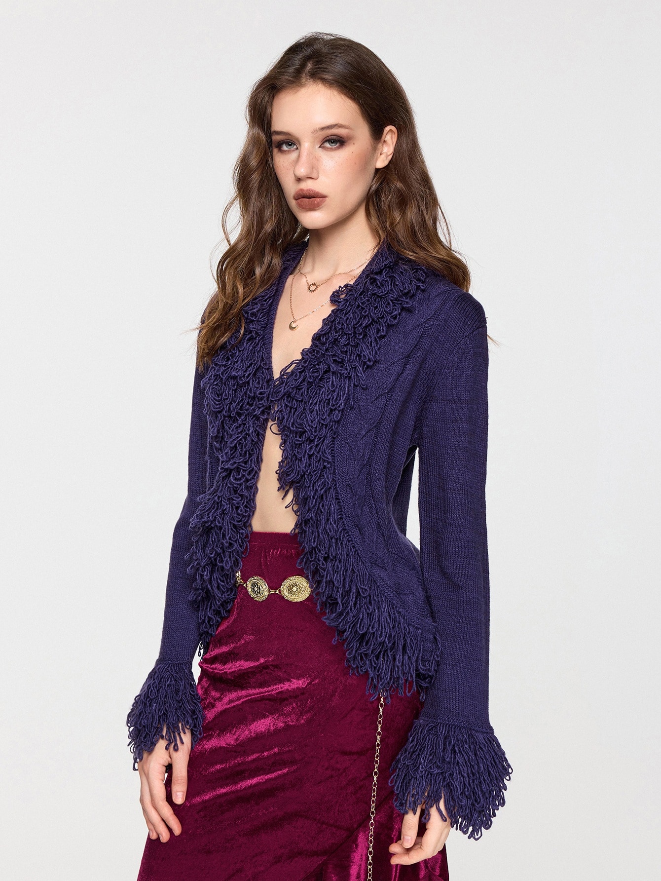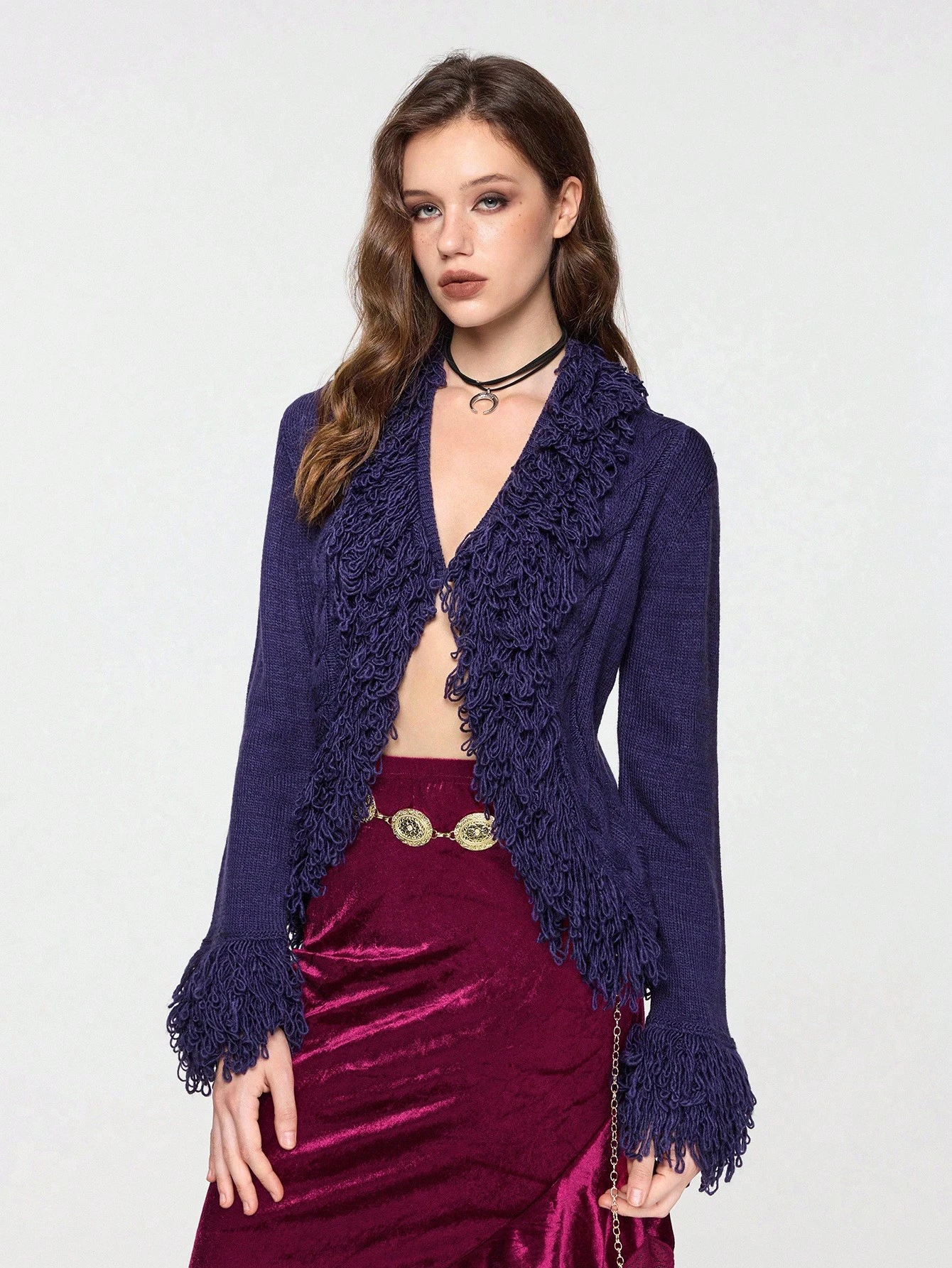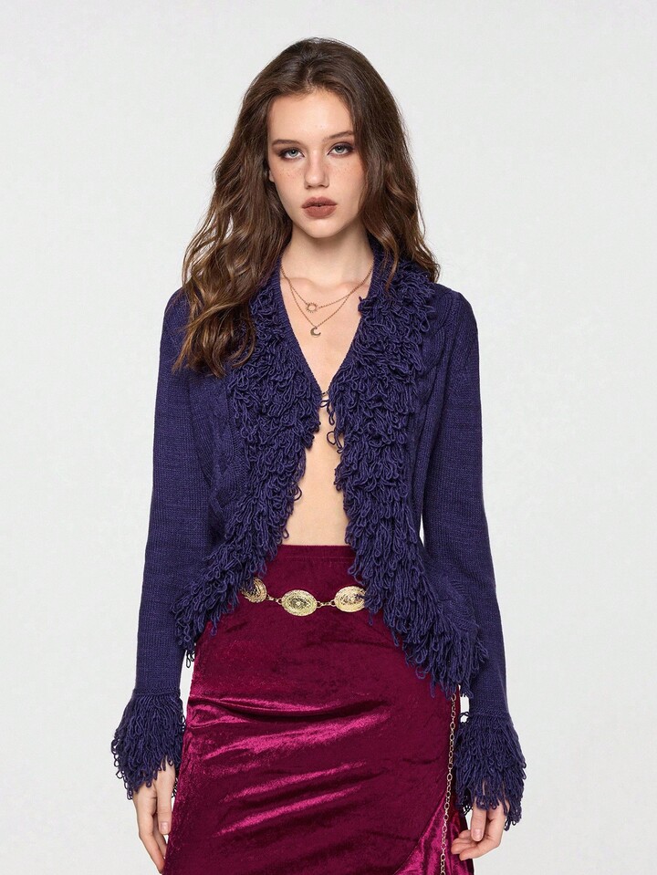 Hippie Cardigan à col V sexy avec franges pour femmes, convient pour les fêtes, les banquets et les festivals de musique