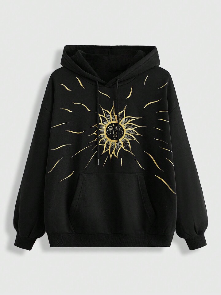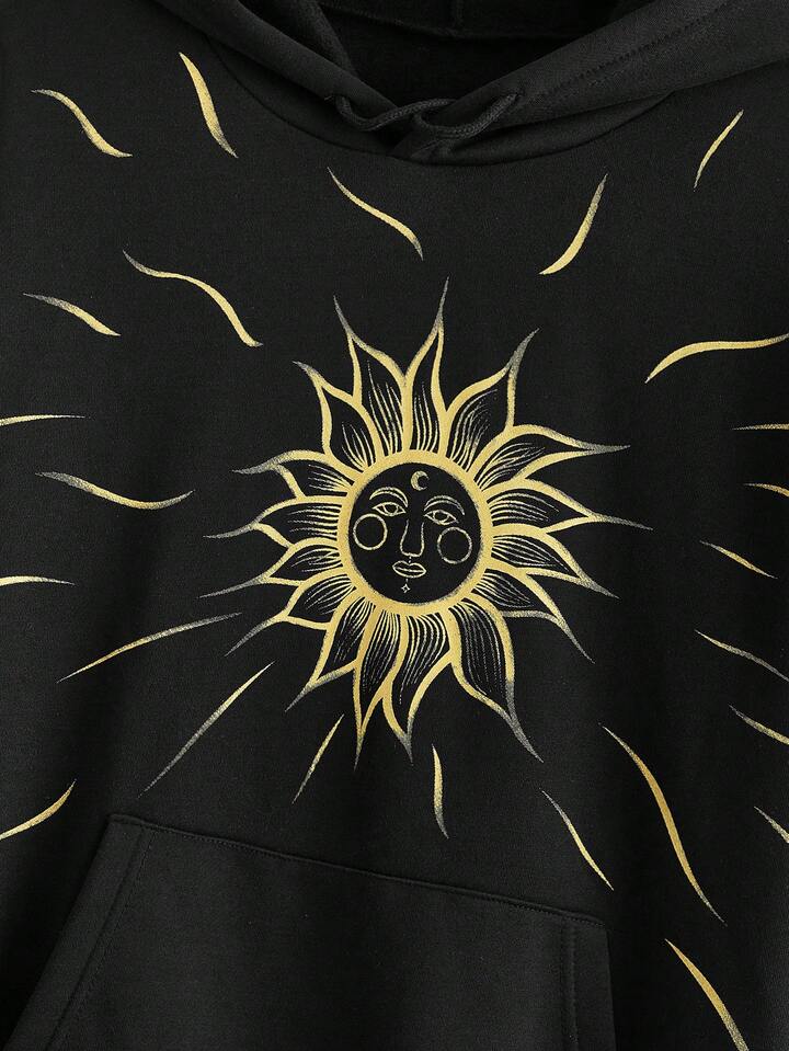 Hippie Sweat À Capuche Pour Femme Imprimé Visage Souriant De Soleil Avec Cordon De Serrage