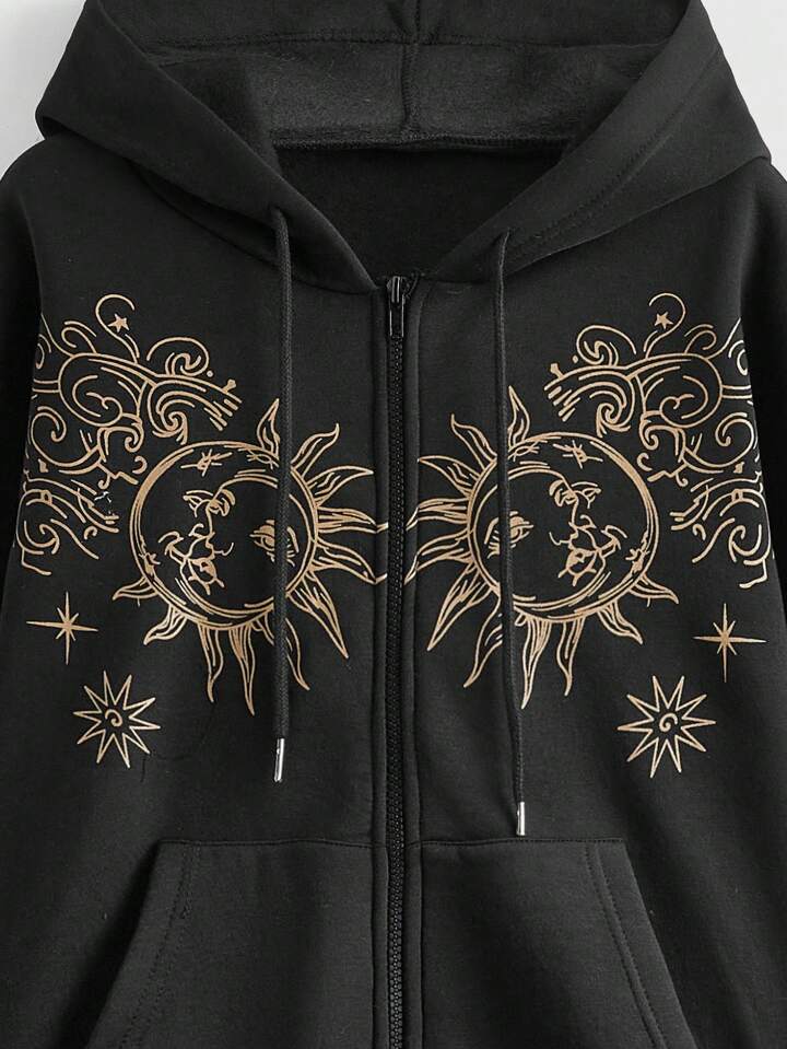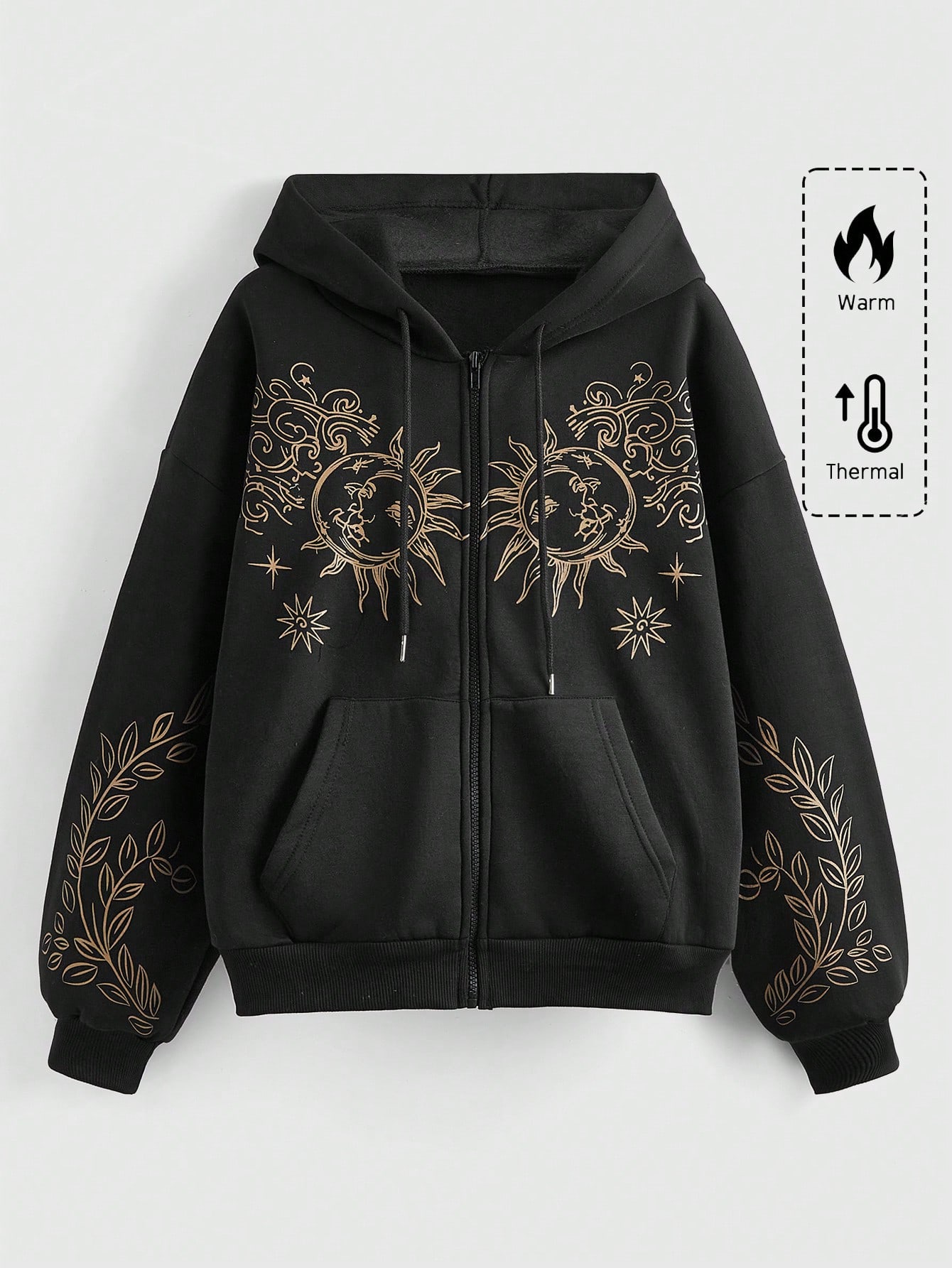 Hippie Sweat-shirt À Capuche Imprimé Tournesol Et Plantes Pour Femmes, Avec Cordon De Serrage