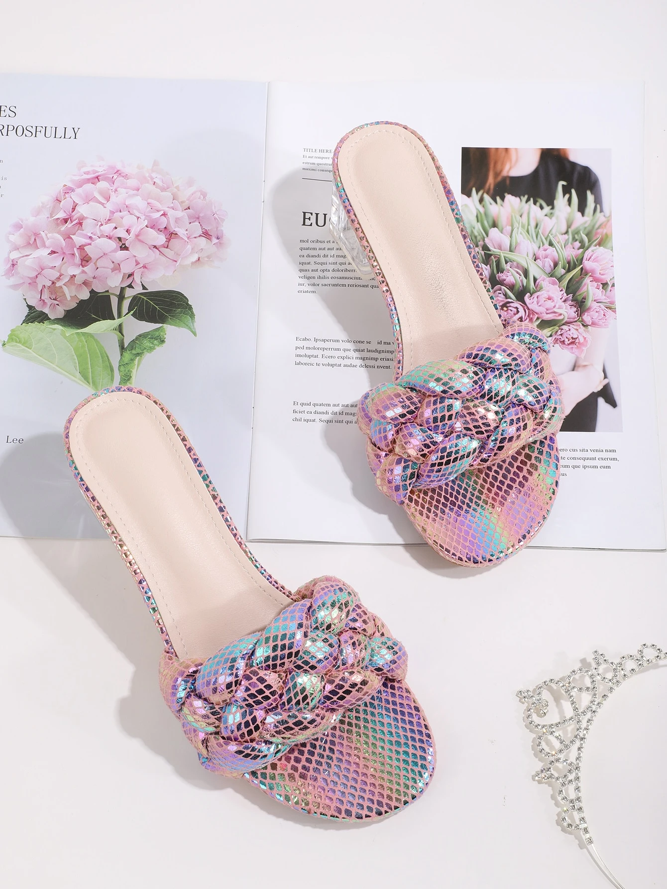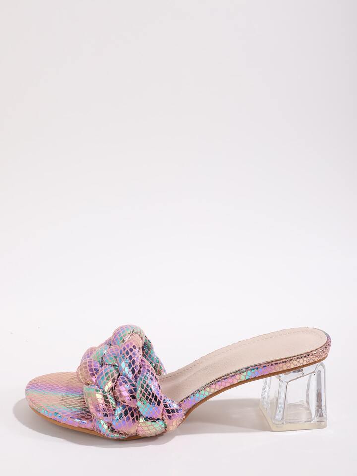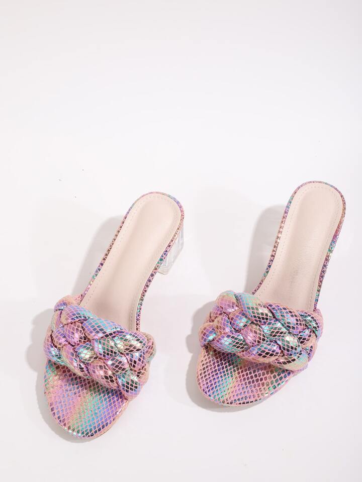 Mules à talons tressées holographique