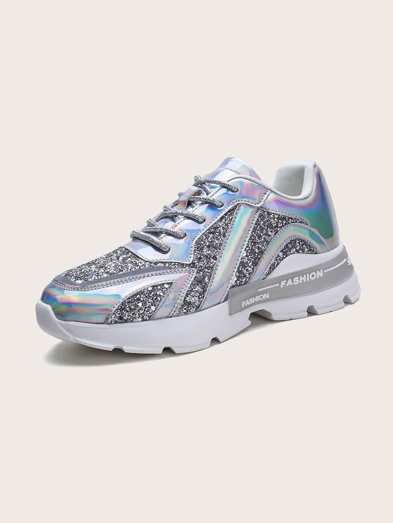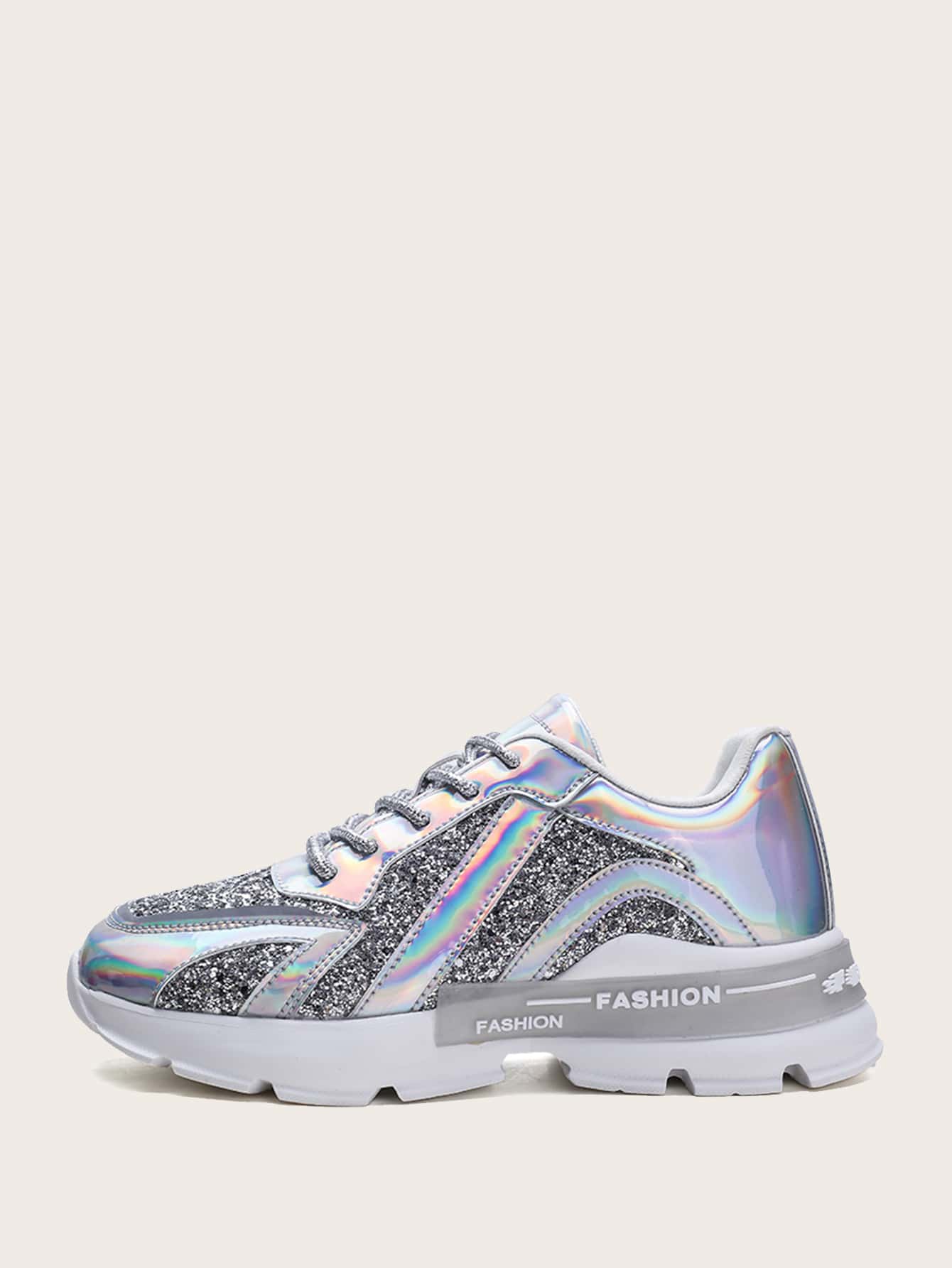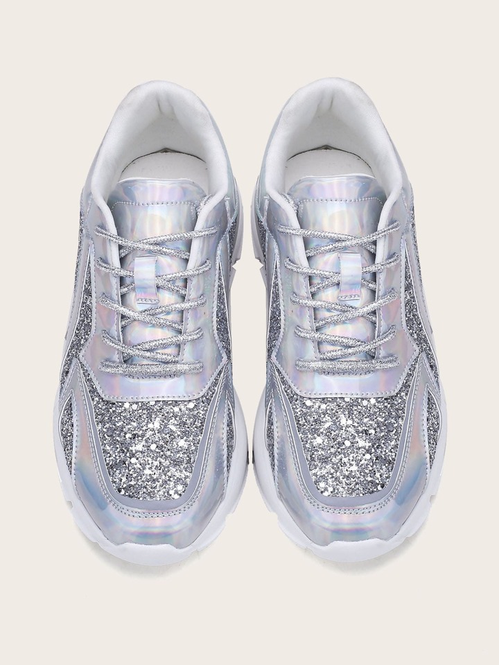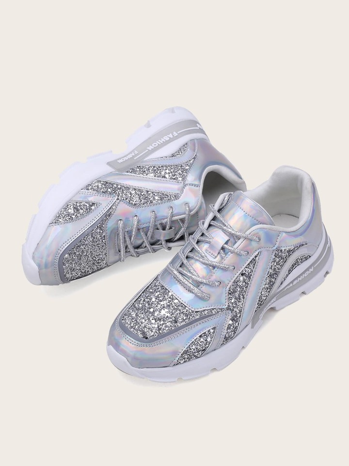 Baskets brillantes avec pièces holographiques