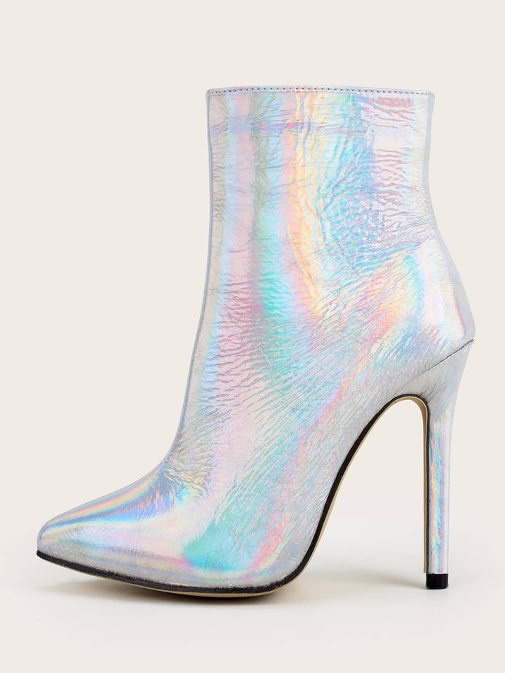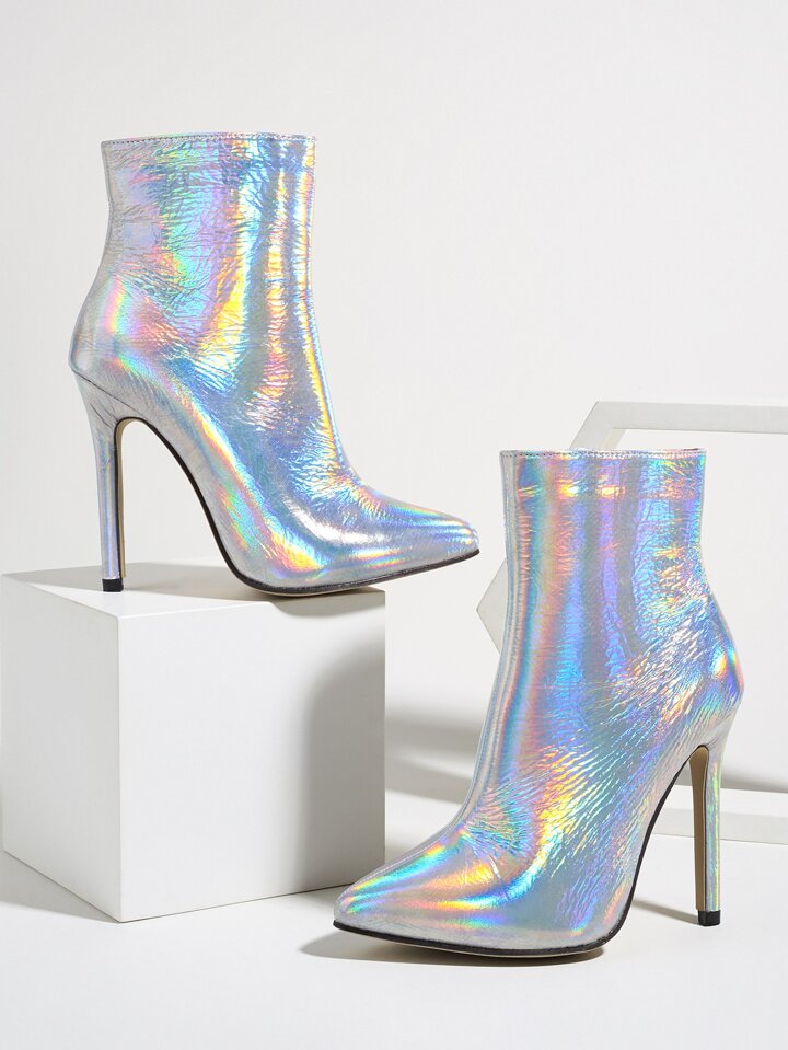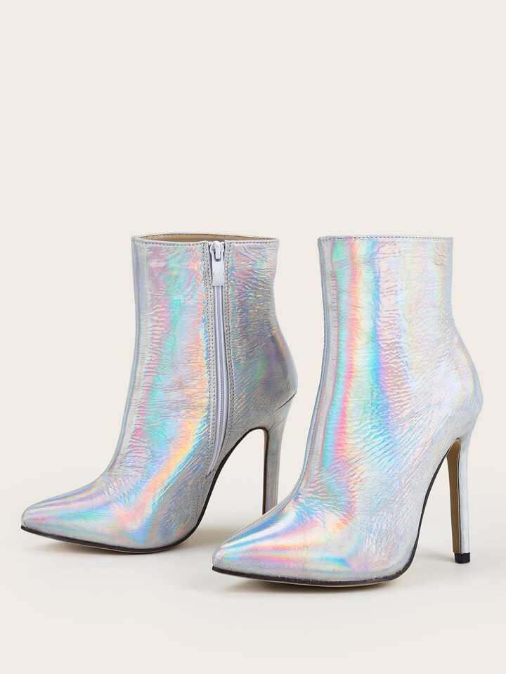 Bottines à talons aiguilles zippées holographique