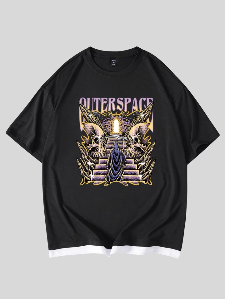 IamYouth Homme T-shirt Lettre Motif Tête De Mort