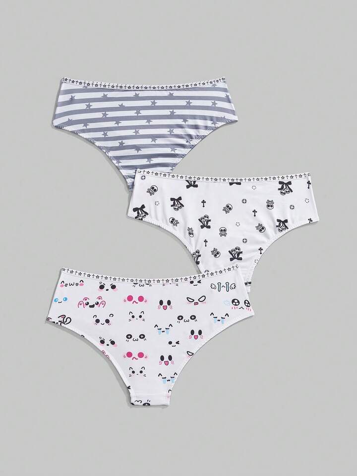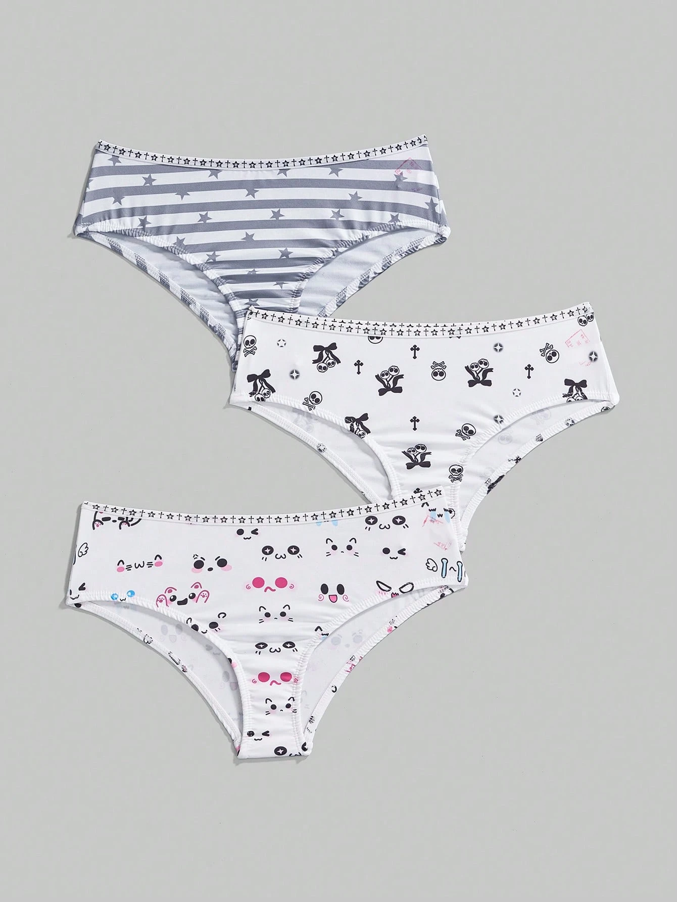 J-Fashion 3 pièces/set Culottes hipster imprimées d'étoiles mignonnes pour femmes