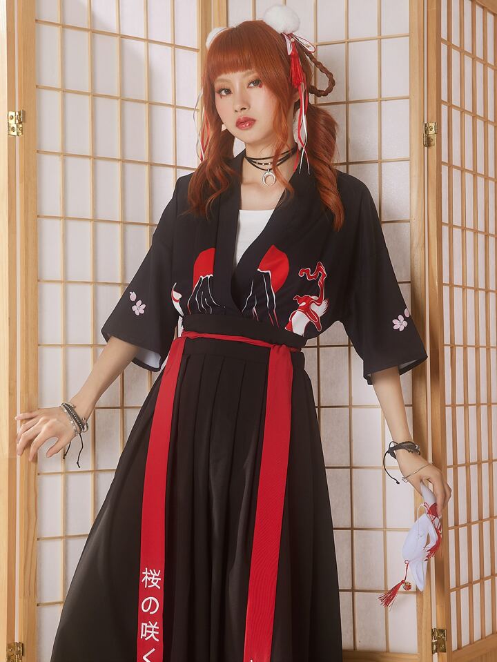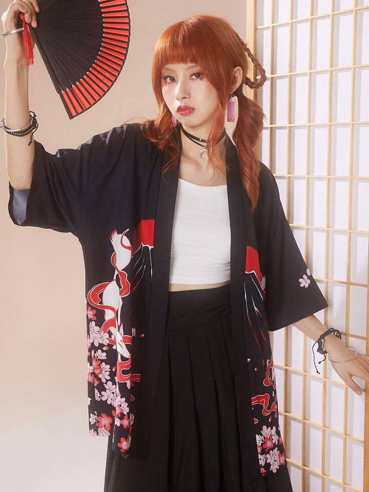 J-Fashion Blouse dessin animé & à imprimé floral