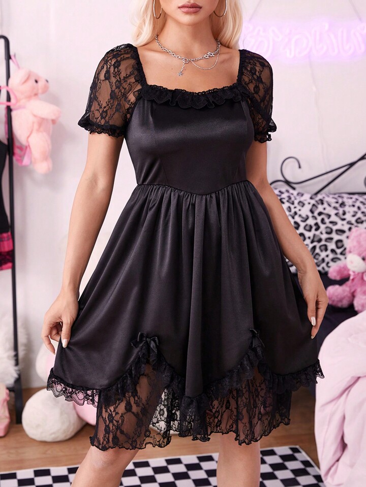 J-Fashion Robe En Dentelle À Nœud Papillon