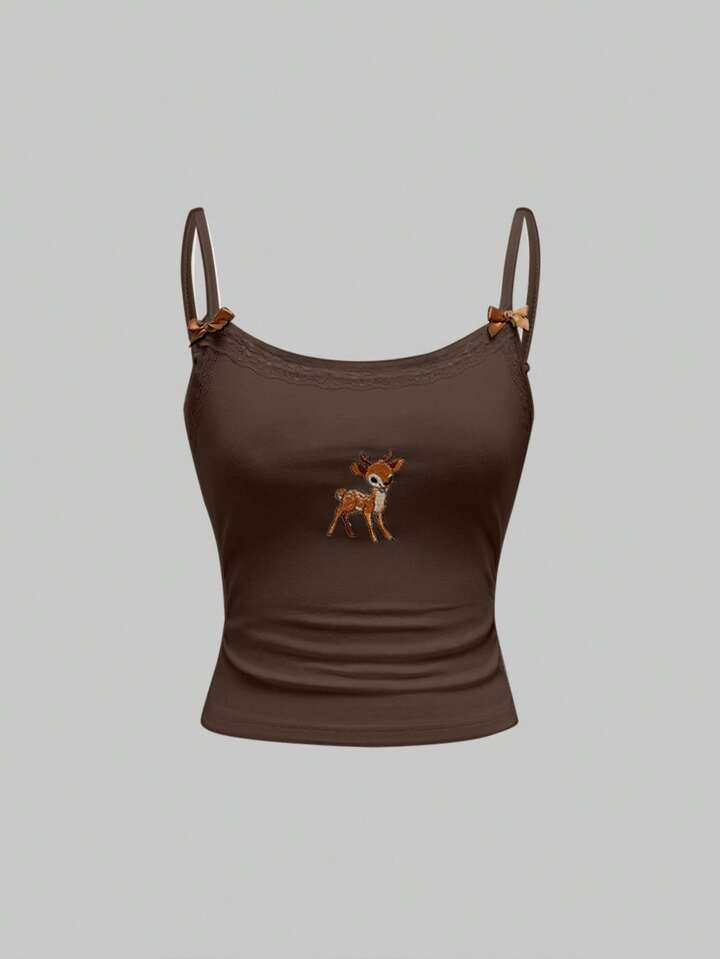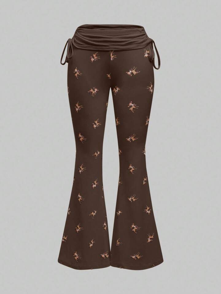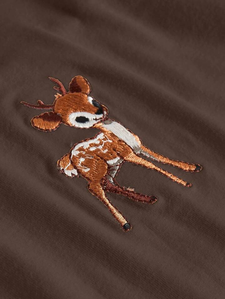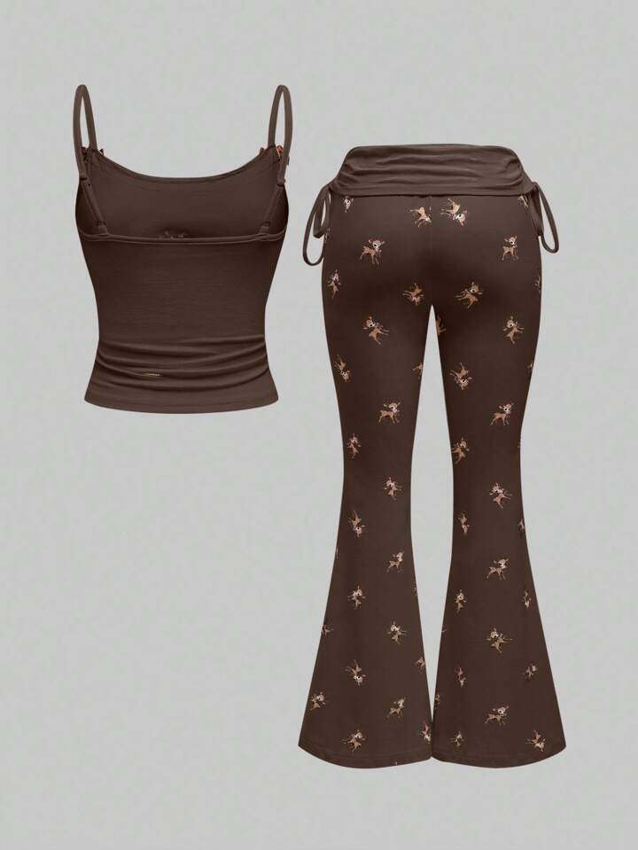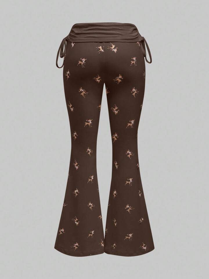 J-Fashion Blouse en dentelle brodée de cerfs mignons assortie à un pantalon évasé imprimé de cerfs