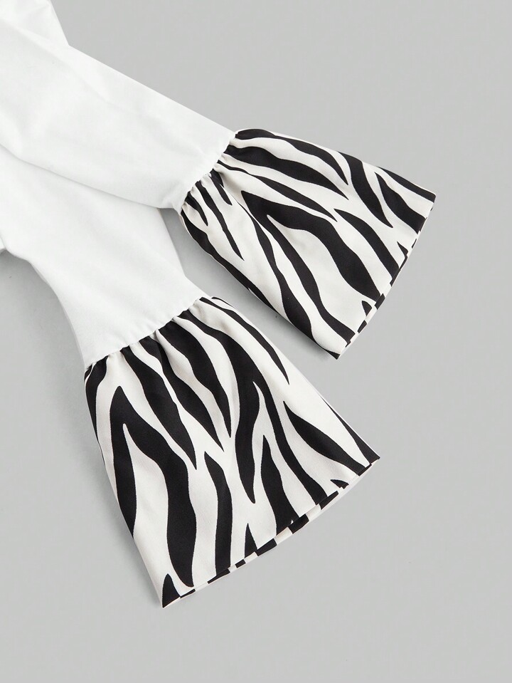 J-Fashion T-shirt zippé plissé style zébré patchwork pour femmes