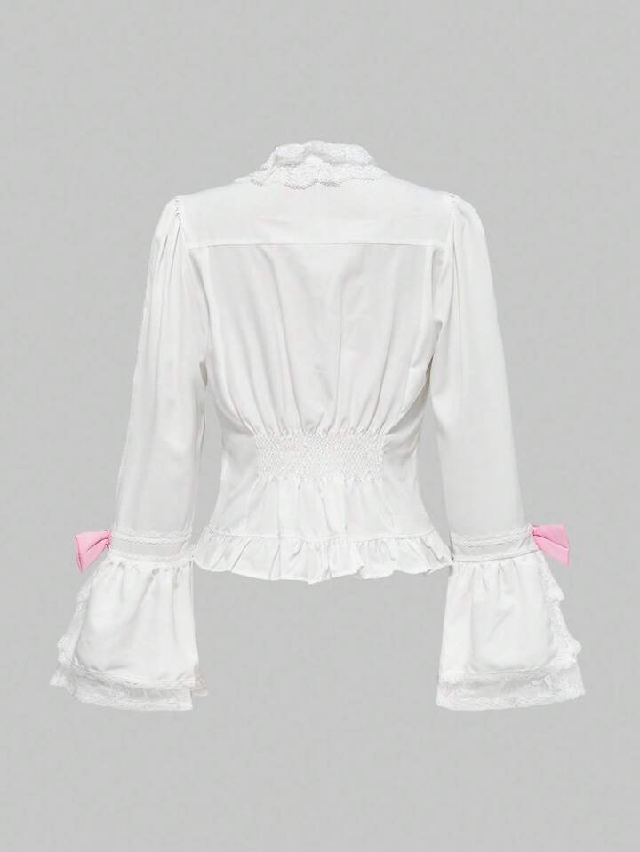 J-Fashion Blouse femme Lolita d'été Babydoll Kawaii douce avec décoration de nœud 3D et manches bouffantes