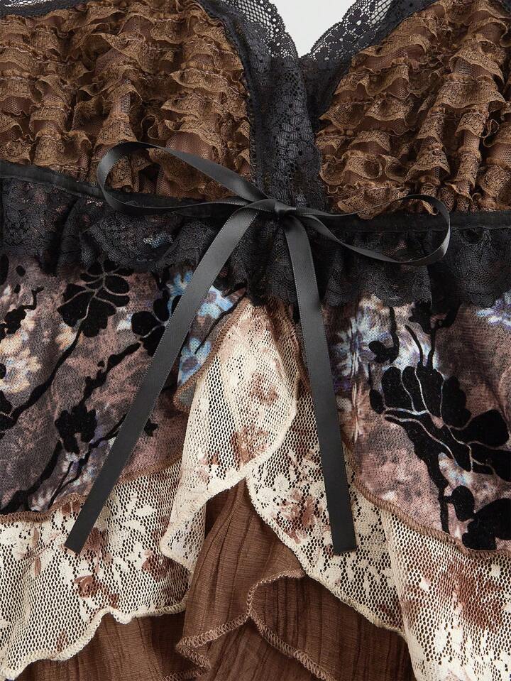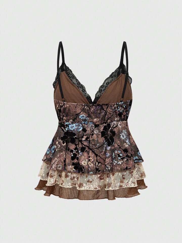 J-Fashion Top de femme vintage hippie du millénaire à motif floral floqué, froissé avec une découpe asymétrique en couches