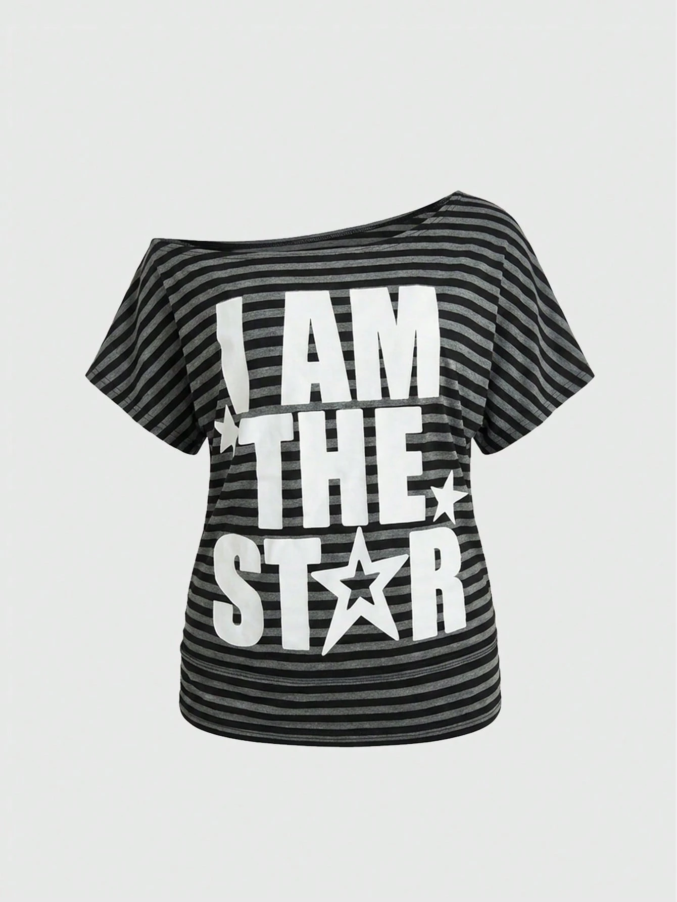 J-Fashion T-shirt multiportable grande taille avec imprimé slogan et étoile Y2K