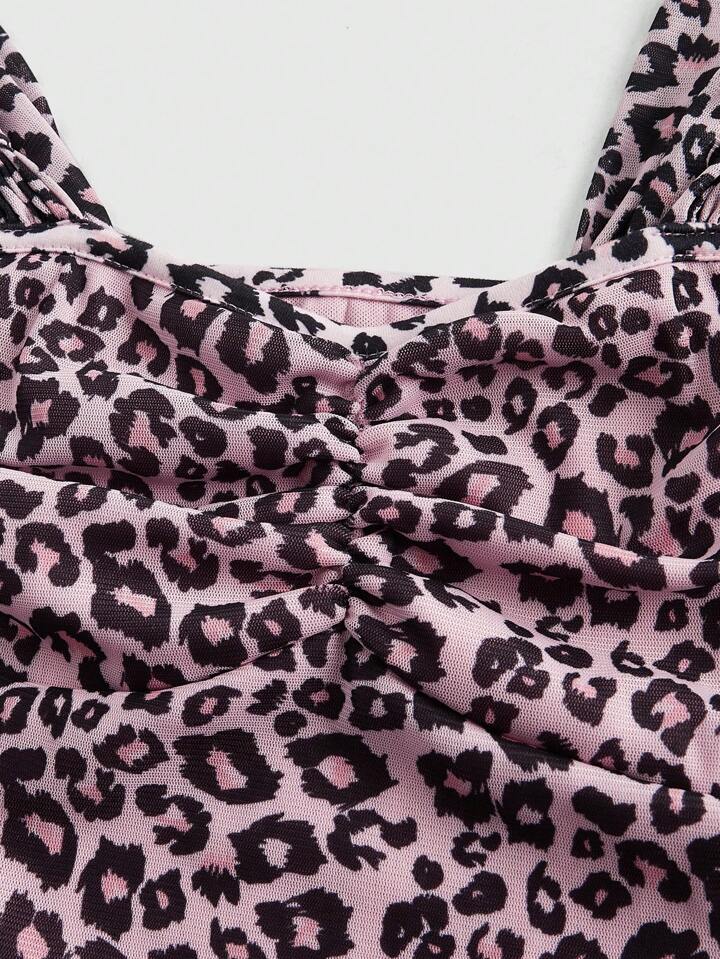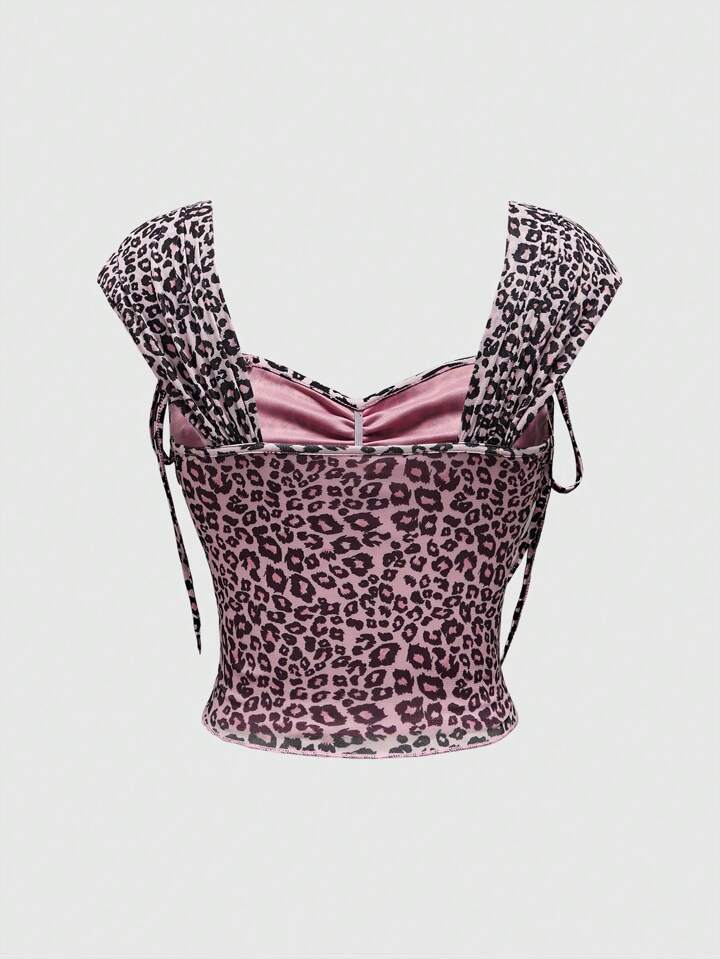 J-Fashion Débardeur femme imprimé léopard sexy avec encolure échancrée, laçage en nœud papillon, maille élastique serrée, convient aux femmes matures, attractives et polyvalentes, école