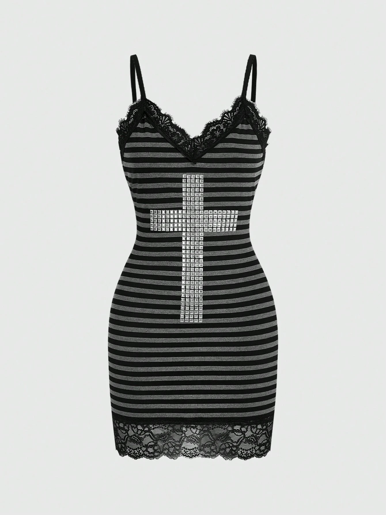 J-Fashion Robe mini croisée à rayures et clous sexy Y2K pour femmes