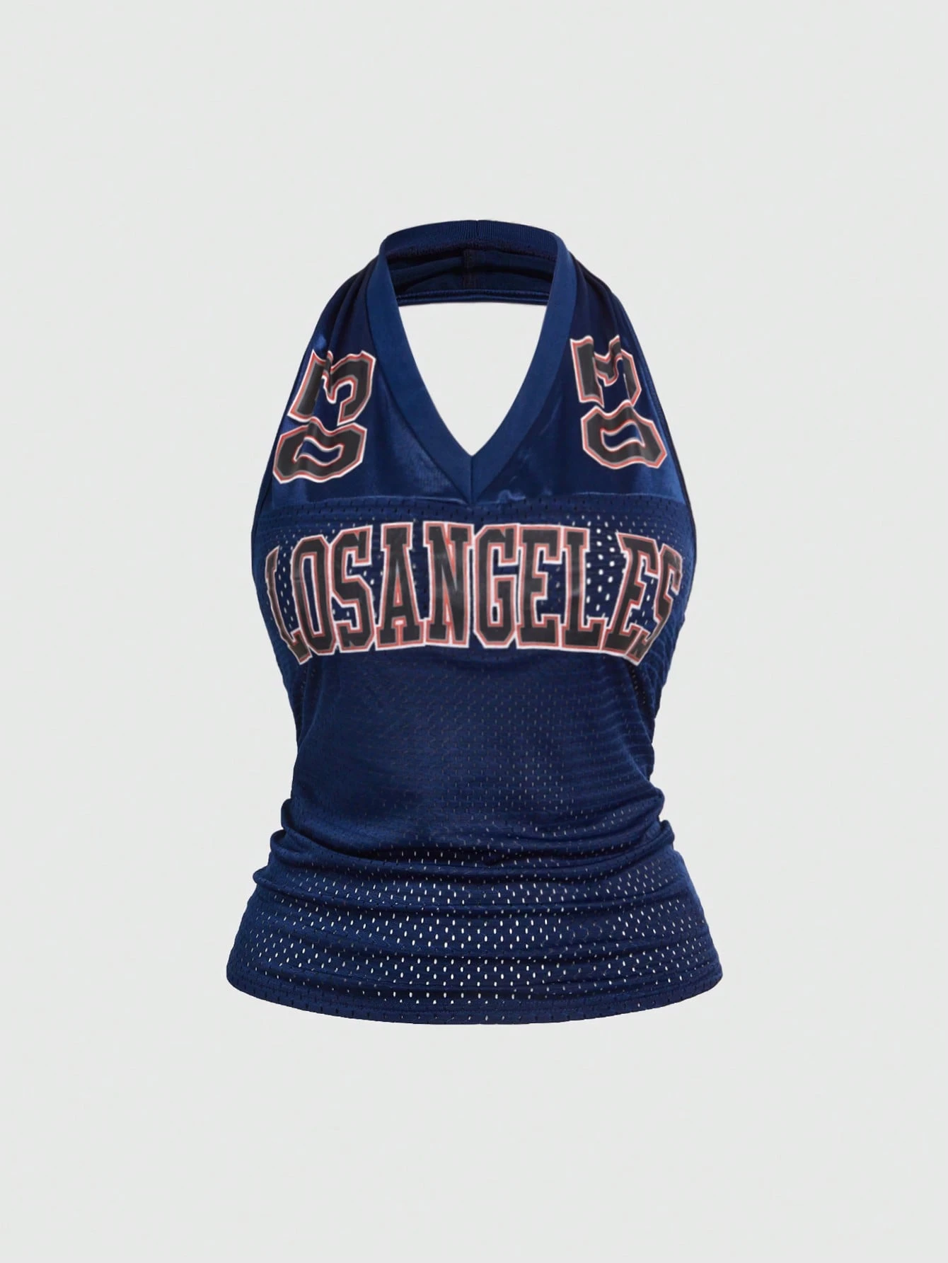 J-Fashion Top de sport à imprimé numérique sexy et sans dos pour femmes