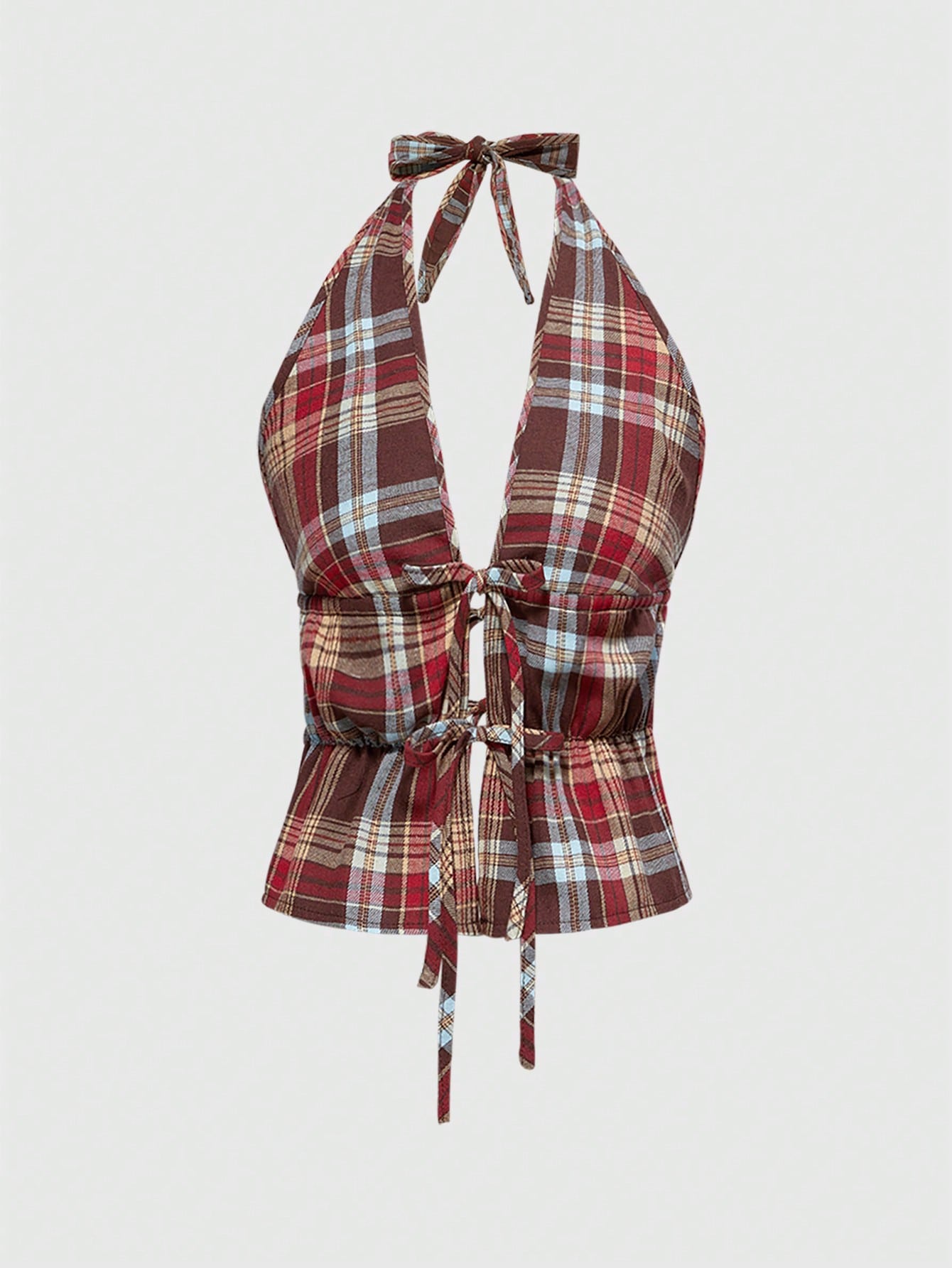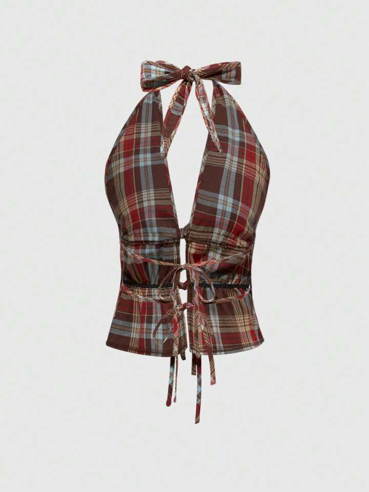 J-Fashion Veste sans manches casual rétro pour femme avec col ras-du-cou, boutons et motif à carreaux