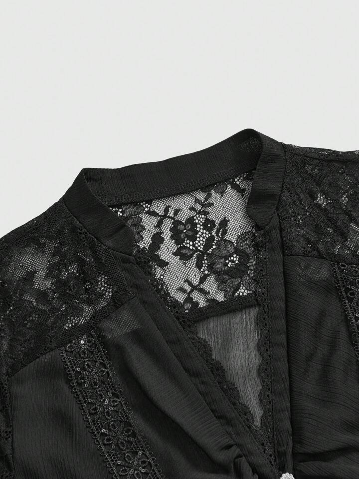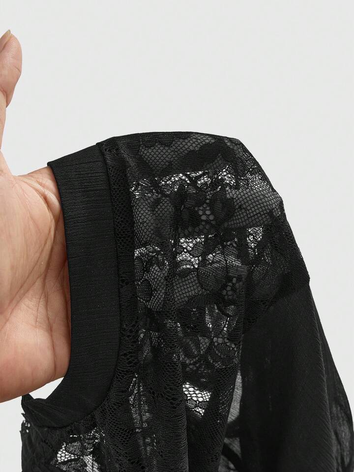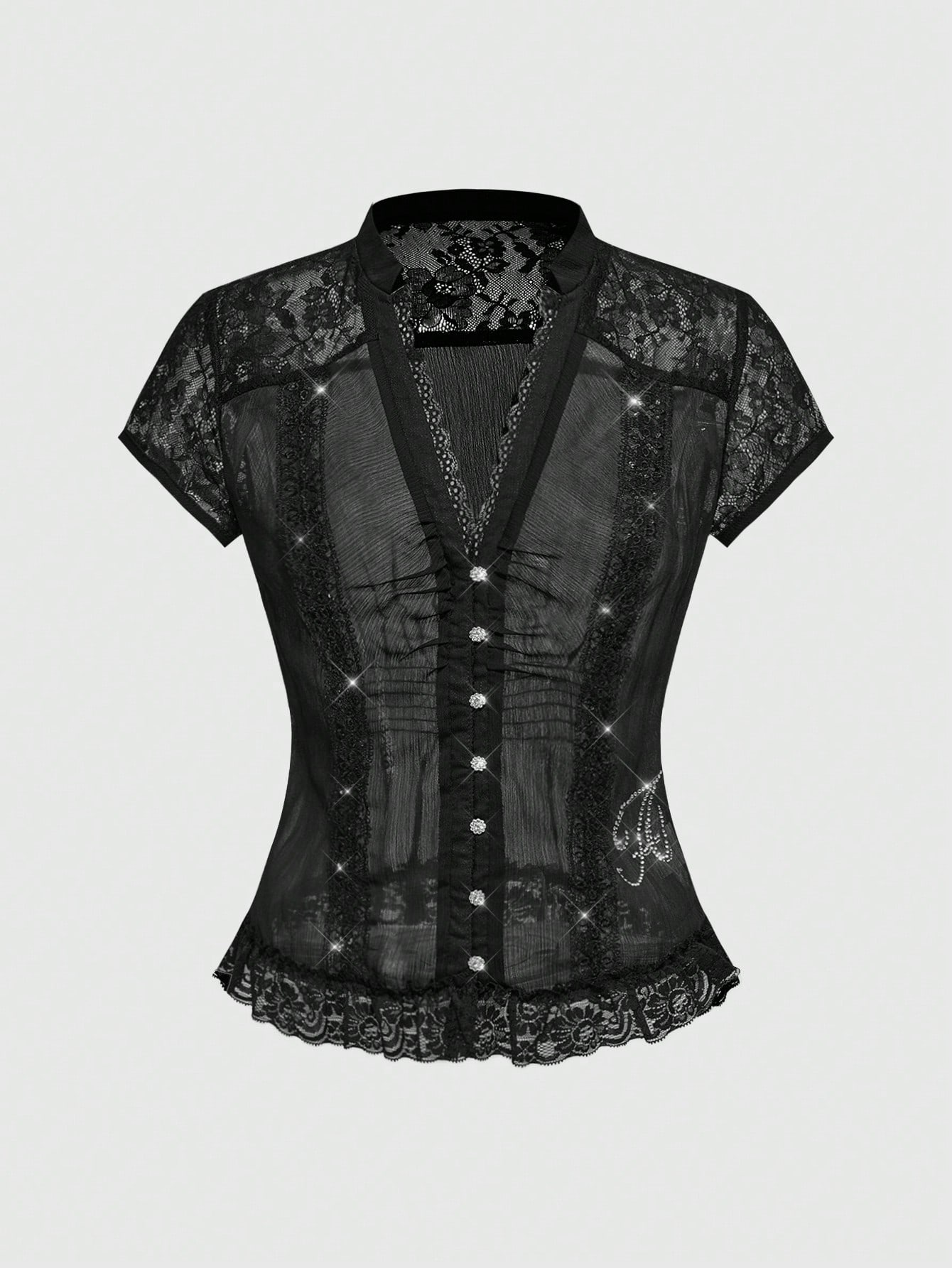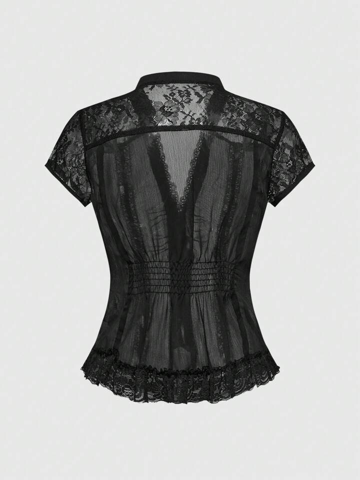 J-Fashion Chemise courte à manches courtes, boutonnée, avec dentelle contrastée, mode pour femmes