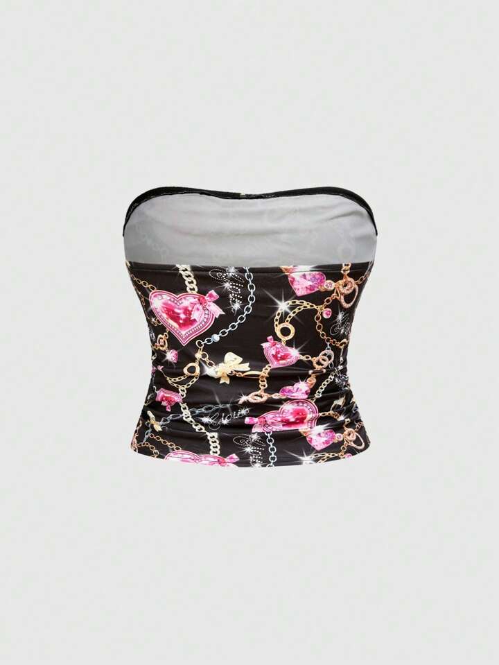 J-Fashion Top imprimé chaîne en diamant et en forme de cœur pour femmes, style Harajuku Gyaru